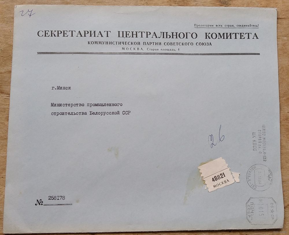 Фирменный конверт Секретариата Центрального Комитета КПСС. Прошел почту. 1983 г.
