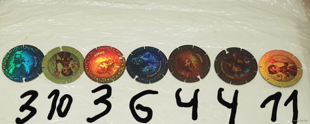 В наличии имеется 1-Аква, 2-Водяной Элементаль (6 Штуки), 4-Мисти (3 штуки), 5-Эмбер (4 штук), 6-Искра и Пламя (5 штук), 7-Лавовый Голем (4 штуки), 10-Террон (3 Штуки), 11-Гео Дроид, 12-Терра и Литос, 13-Пуфф (3 штук), 15-Скайрон (5 штук), 16-Скай (6 штук), 19-Земляная Сфера, 21-Похититель Сил, 23-Кубики Судьбы, 25-Е-ВА (4 штуки) и 26-Хитрон (12 штук) нажимете один клик какие фишки вы выбрали. ПОЧТОЙ НЕ ВЫСЫЛАЮ. ПЛАТЕЖИ НА БАЛАНС ТЕЛЕФОНА И НА КАРТУ ДЛЯ ОПЛАТЫ НЕ ПРИНИМАЮ. В УСЛОВИЙ ОПЛАТЫ ТОЛЬКО НАЛИЧНЫЕ И САМОВЫВОЗ ТОЛЬКО С МИНЧАНИНОМ СВЯЗЫВАЮСЬ в любые договорные дни в Минске (с 11:00 до 20:00 часов). Обязательно только звоните в крайнем случай возможно буду отсутствовать дома в Сентябре мой телефон указан слева в "Контактном Данном" (с 10:00 до 21:00 часов). ЗАРАНЕЕ МЕНЯ НЕ БЕСПОКОИТЬ. УБЕДИТЕЛЬНАЯ ПРОСЬБА ПОСЛЕ НАЖАТИЯ ПОКУПКИ ЛОТА ПИШИТЕ ПОЖАЛУЙСТА НА ЭЛ. АДРЕС ВИБЕРОМ И ДРУГИМИ СЕТЯМИ НЕ ПОЛЬЗУЮСЬ В КОММЕНТАРИЯХ ОСТАВЛЯТЬ НЕЛЬЗЯ!