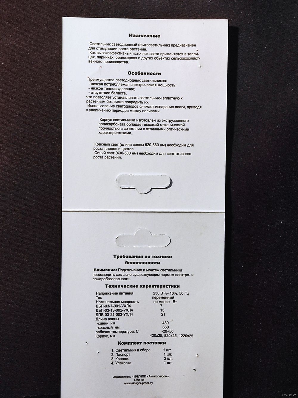 В комплекте шнур питания с выключателем, 2 скобы с шурупами для крепления. Корпус выполнен из прочного экскрузионного поликарбоната с отличными оптическими характеристиками.