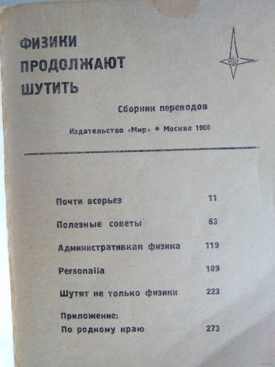 28. В этой книге вы увидите серьезную науку с новой, несколько неожиданной стороны. Помимо юморесок, написанных зарубежными физиками, в этом издании присутствуют шутки и советских физиков. Эта книга - несомненное доказательство того, что наука, как и другие сферы человеческой деятельности, имеет свои смешные стороны. Здесь вы найдете сплав сатирической науки и научной сатиры. Настоящая книга является расширенным изданием популярной книги `Физики шутят`, вышедшей в 1966 году. Вес 210 гр. Нет последней страницы.