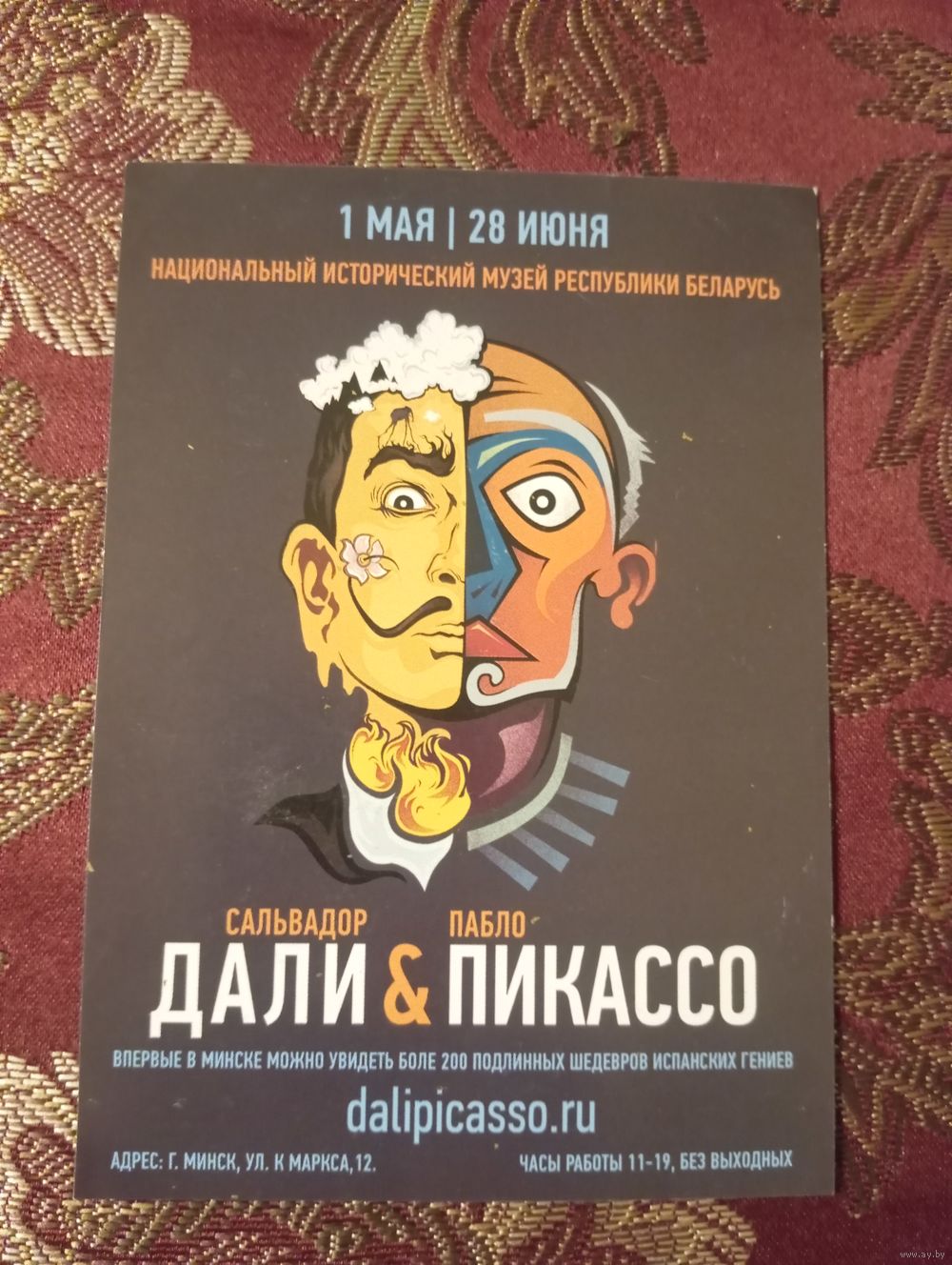 Рекламный флаер анонсирует выставку работ Сальвадора Дали и Пабло Пикассо, которая ранее проходила в Минске.