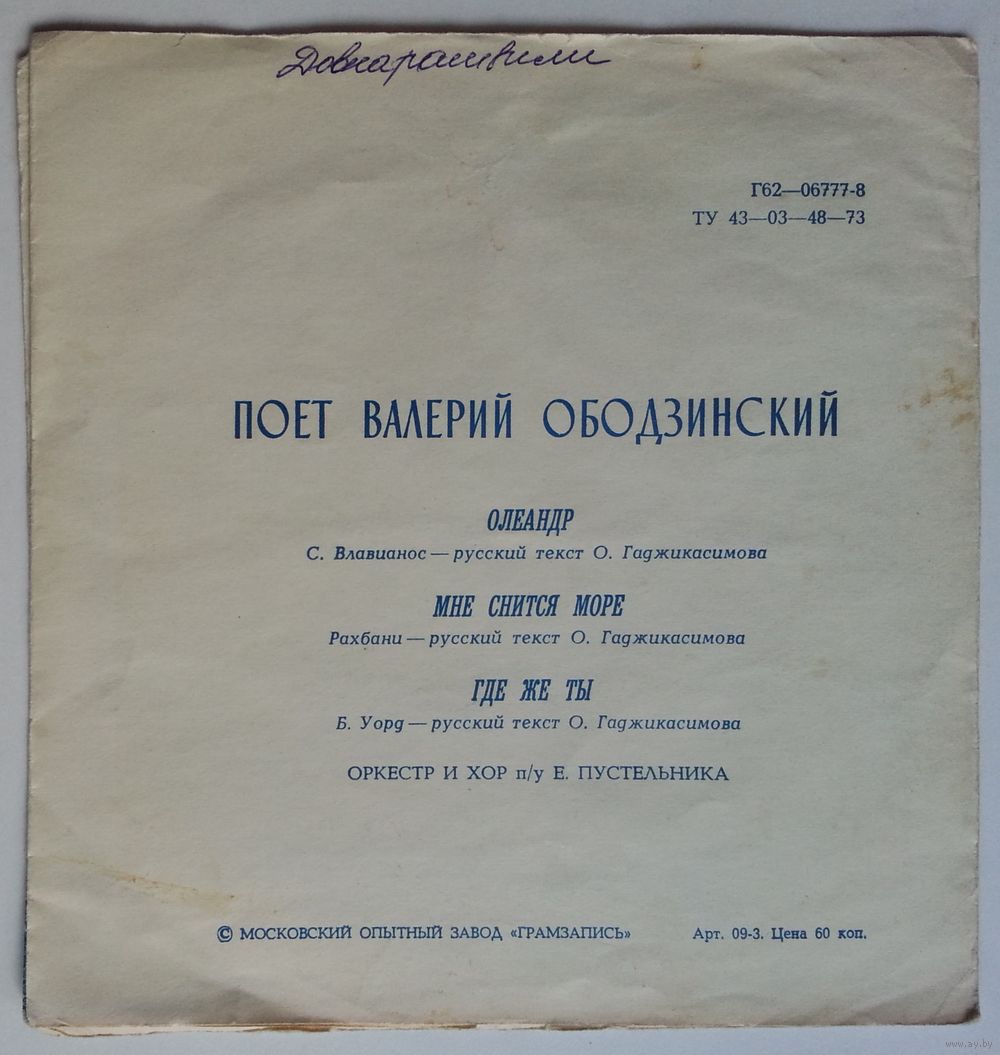 On back cover: © МОСКОВСКИЙ ОПЫТНЫЙ ЗАВОД «ГРАМЗАПИСЬ»