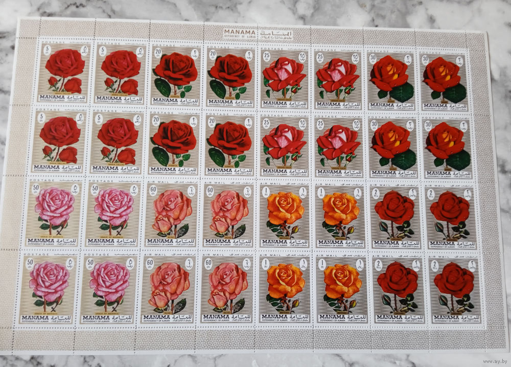 Флора. Розы. Манама (ОАЭ). 1971. 1 малый лист б/з. Michel N 411А (40,0 е)