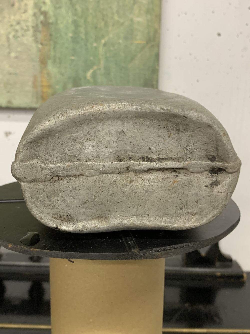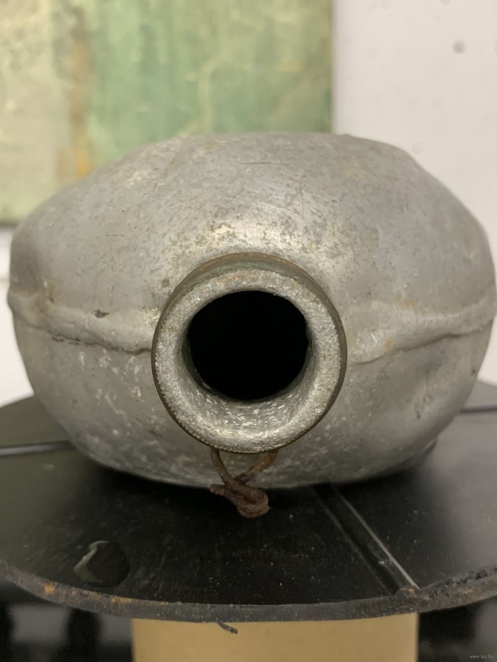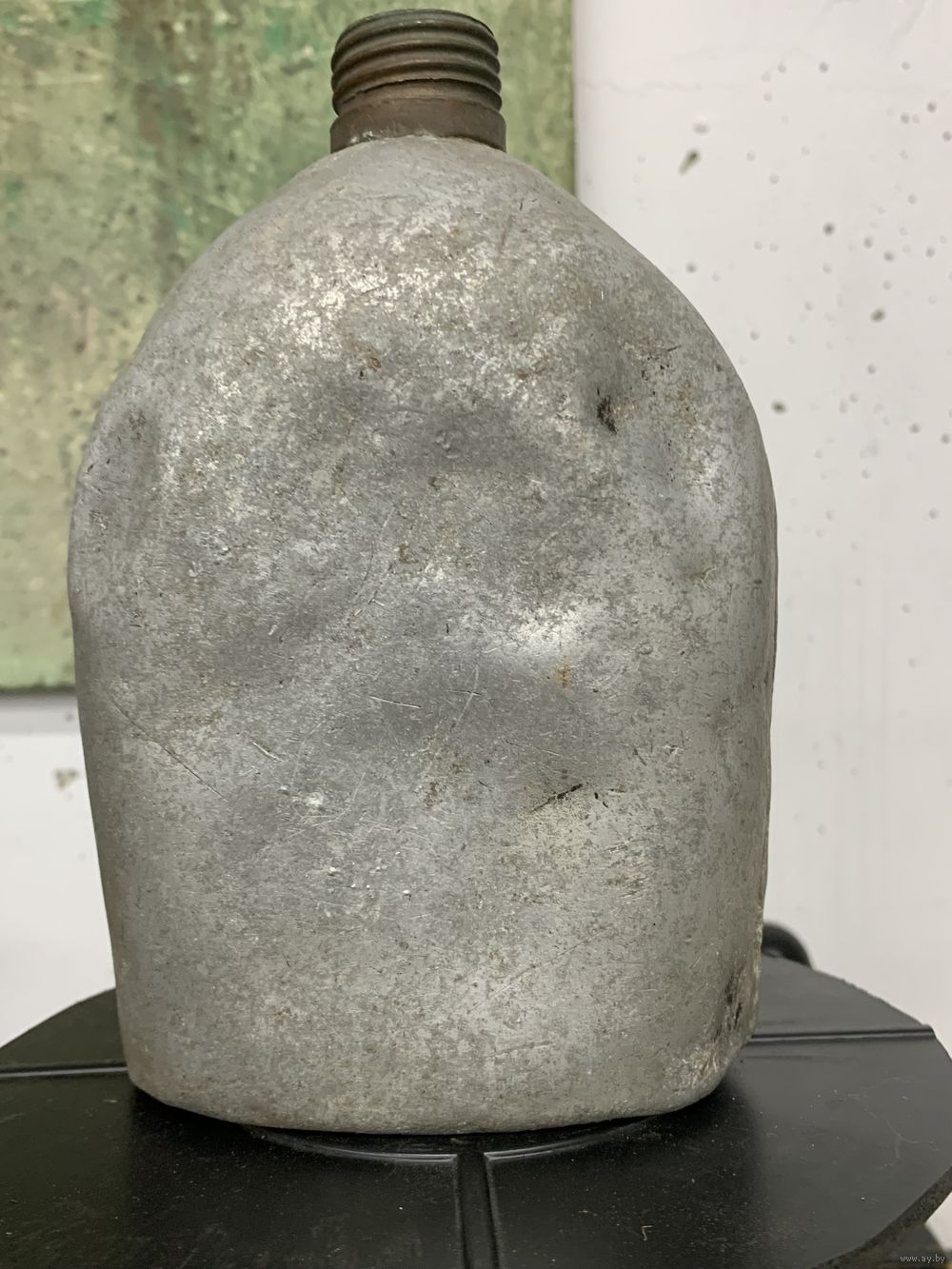 Фляга армейская М1910 год выпуска 191?, клеймо даты читается плохо, но есть. Алюминий, горлышко имеет латунную резьбу. Есть один свищ.