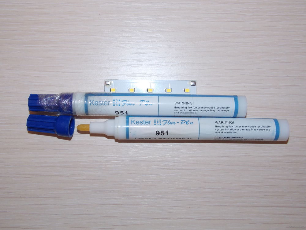 Для пайки шин при соединении солнечных панелей. Наносит тонкую прозрачную полоску, которая не заливает кристаллы. Принцип фломастера.