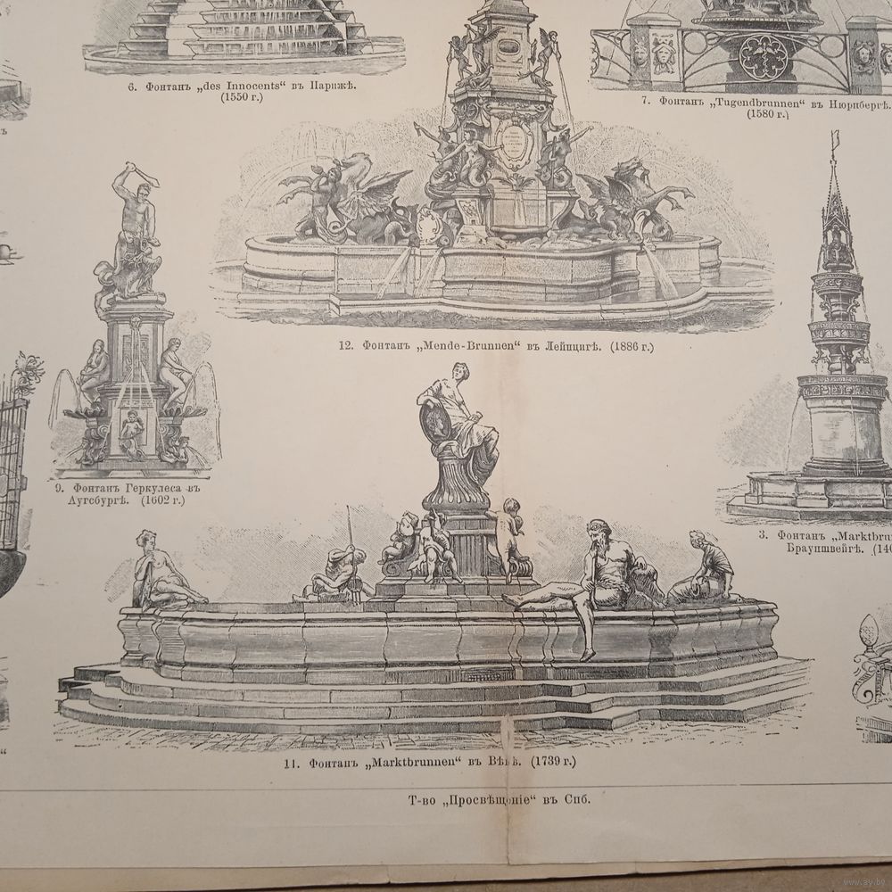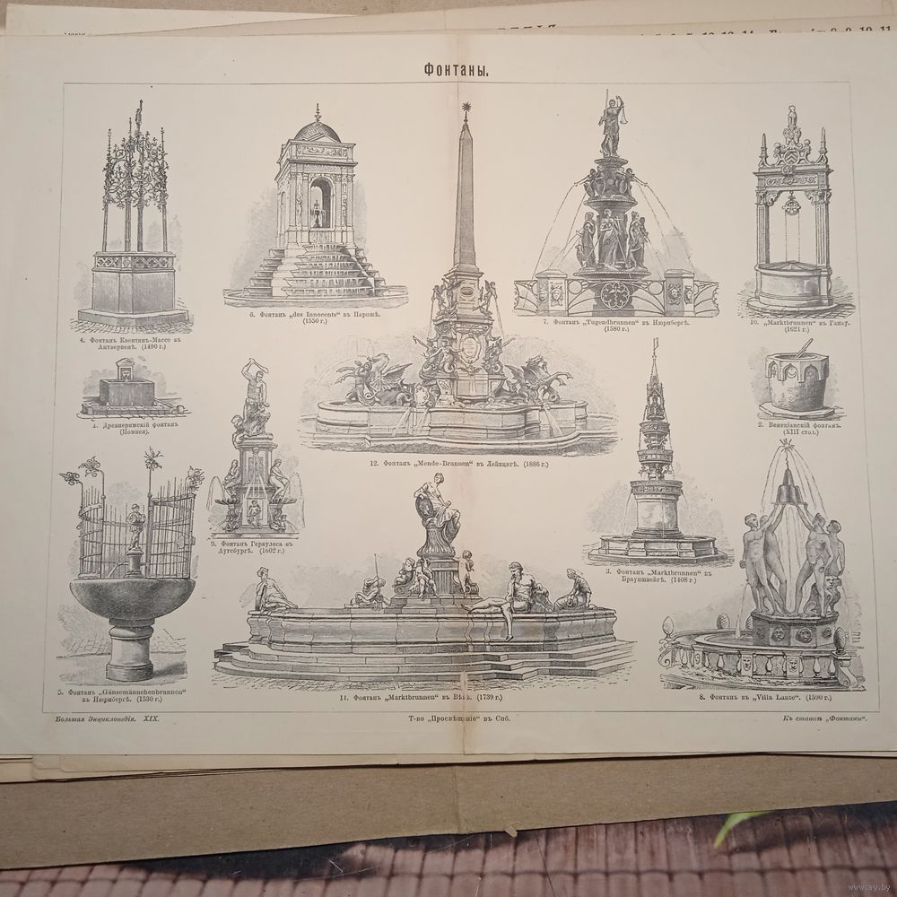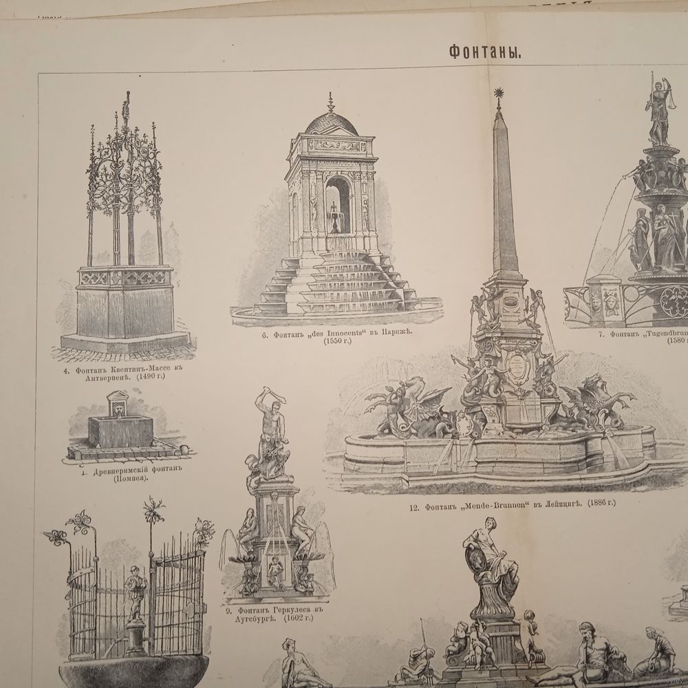 ФОНТАНЫ. Энциклопедическая гравюра конец 19в. Спб. 32х24см.