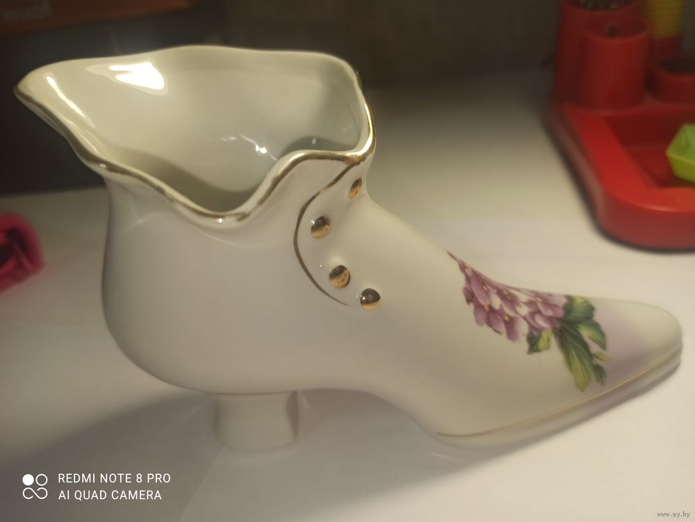 | Продам фарфоровую туфельку. Размер длинна 14 см, высота 9см | |