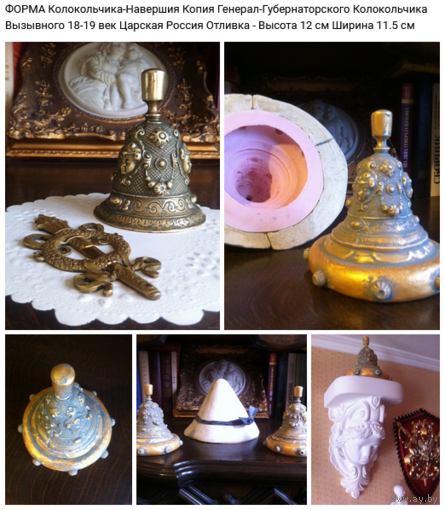 ФОРМА для отливки Навершия-Колокольчика вызывного , копия Генерал-Губернаторского 18-19 век Царская Россия , форма силикон , корпус гипс , отливка получается выс 12 см , шир 11.5 см Всё Белпочтой или самовывоз
