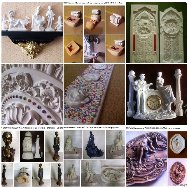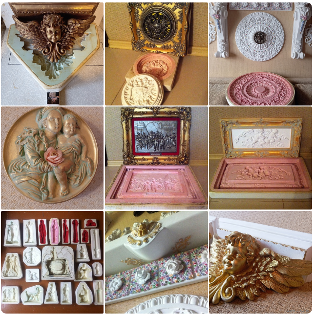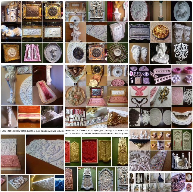 ОПТ - ФОРМЫ для отливки Барельефов 75 шт от самой мелкой типа цветка до самой крупной формы статуи Девы Выс. 90 см и прочие вспомогательные . P.S. - Формы Бюст Наполеона , Ангел на подушке , Колонна-пьедестал что на фото проданы . САМОВЫВОЗ