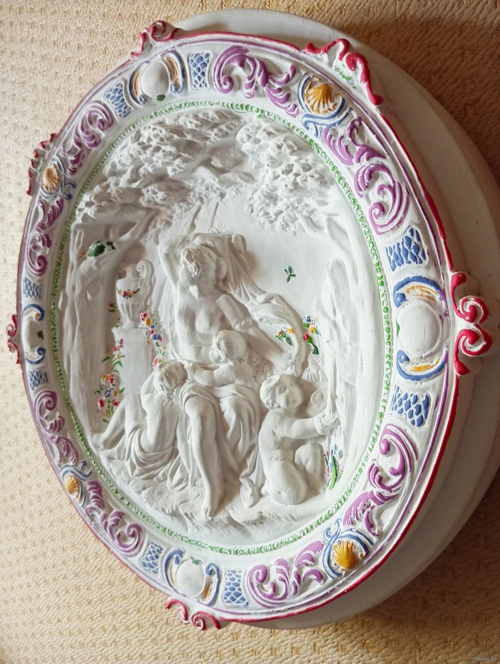 Форма У РОДНИЧКА , та что круглая , гипсовый корпус расколот , форма растянута но рабочая , барельеф что на фото отлит из этой формы. Если с формой Тайная Вечеря купите то самовывоз она тяжёлая и большая , остальные вышлю Белпочтой .