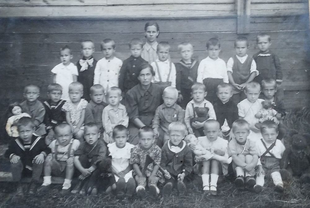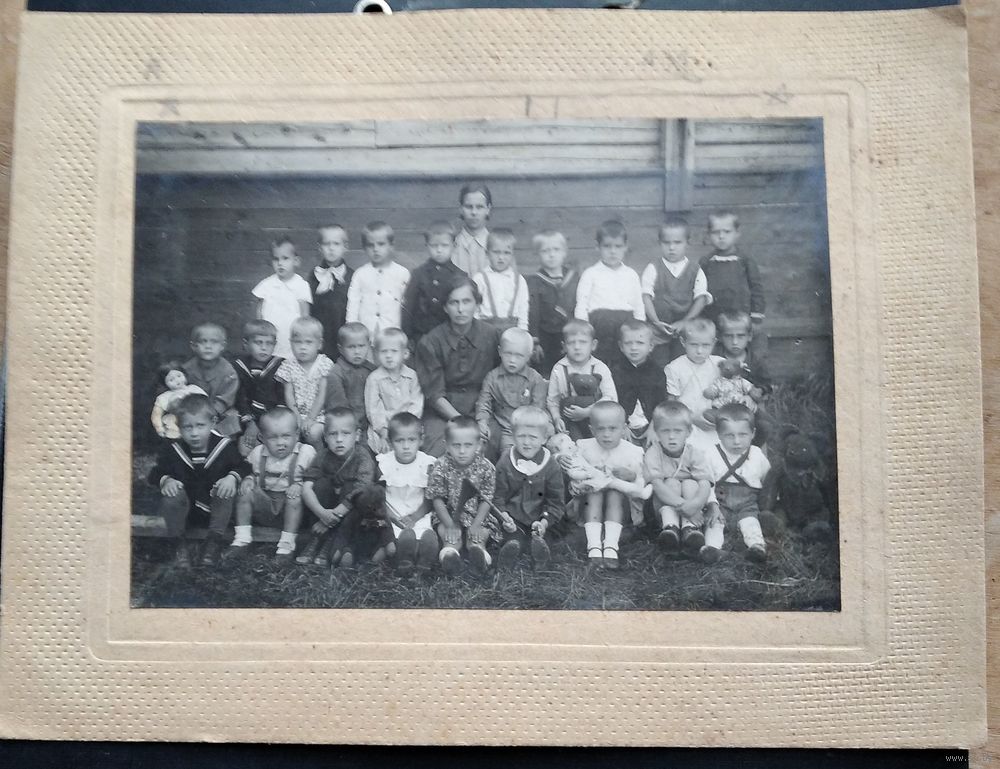 Фото детей детского сада с воспитательницей. 1930-е. 16х23 см. На паспарту.