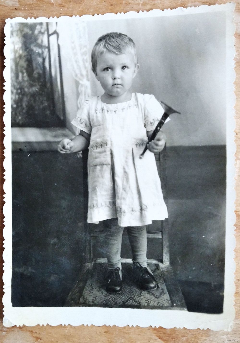 Фото девочки с дудочкой. 1930-е. 8х11 см.