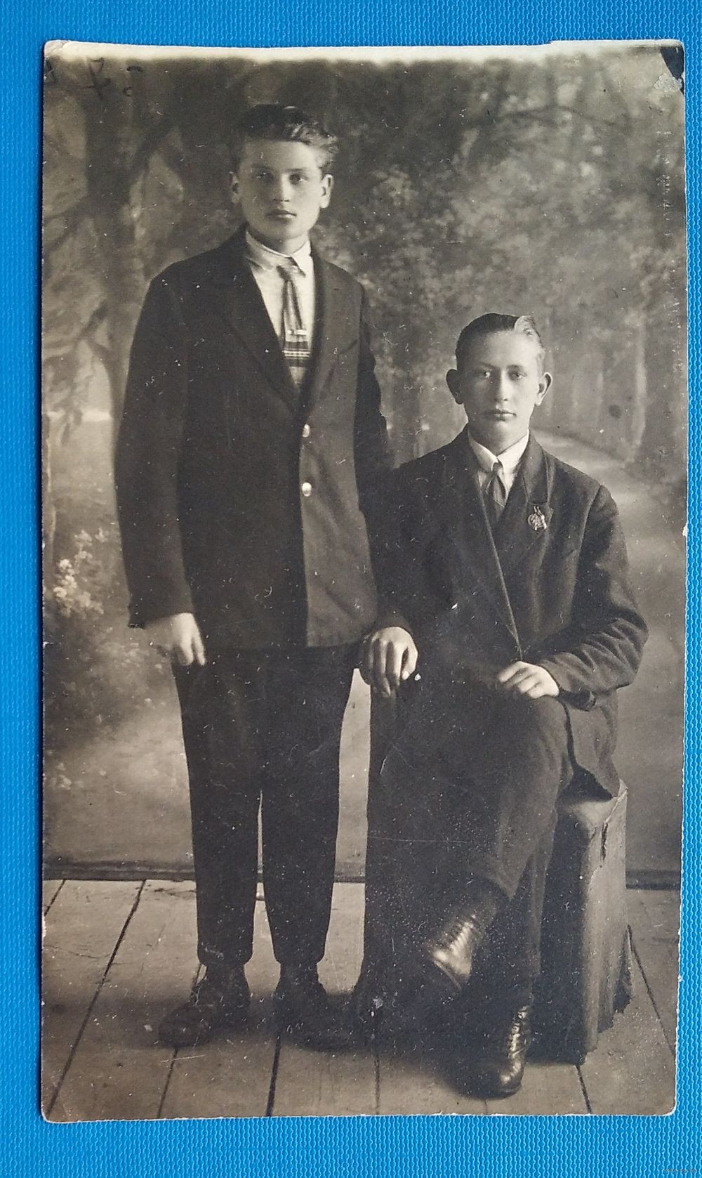 Фото двух юношей. 1930-е. Знаки 8x14 см