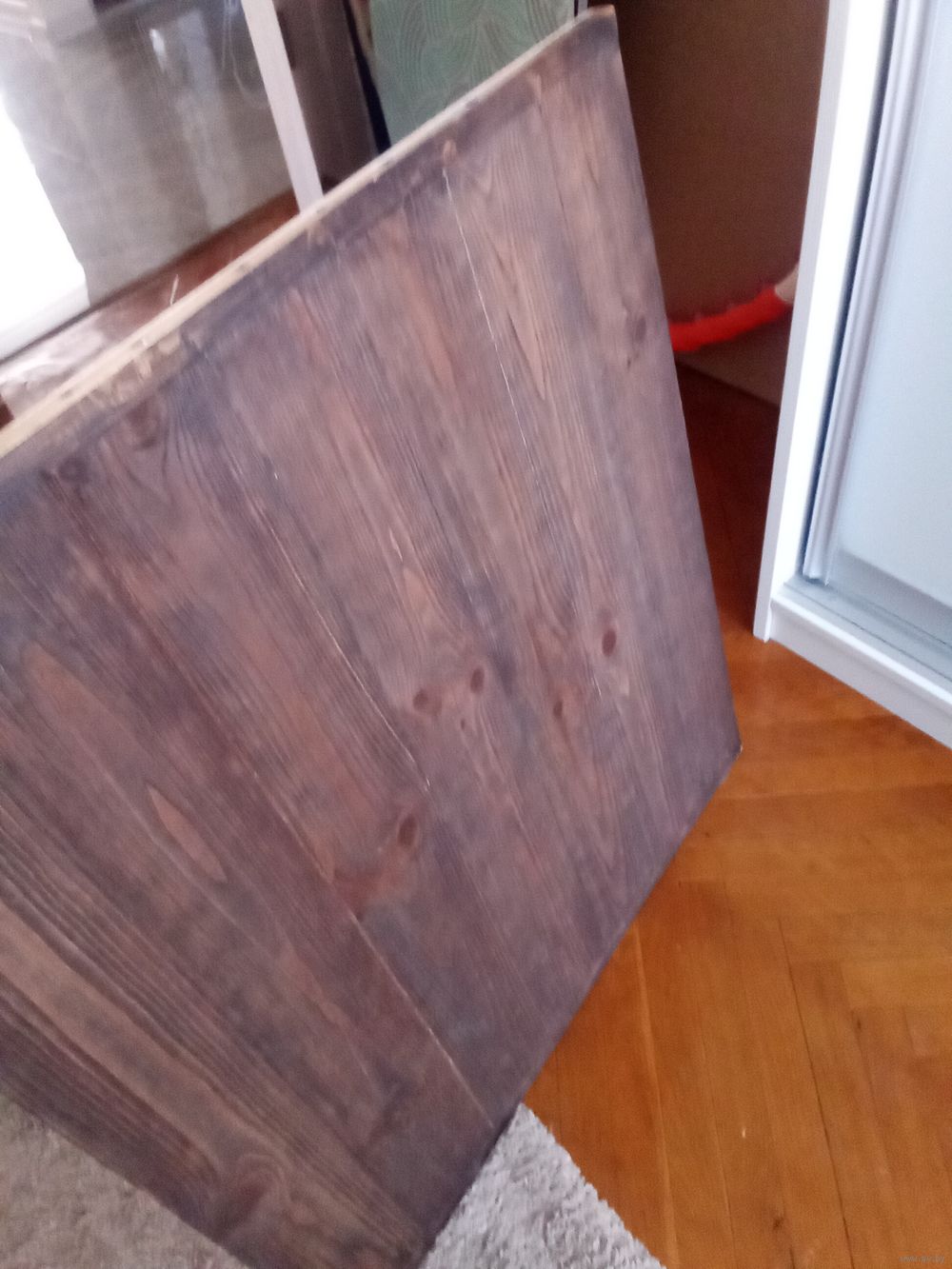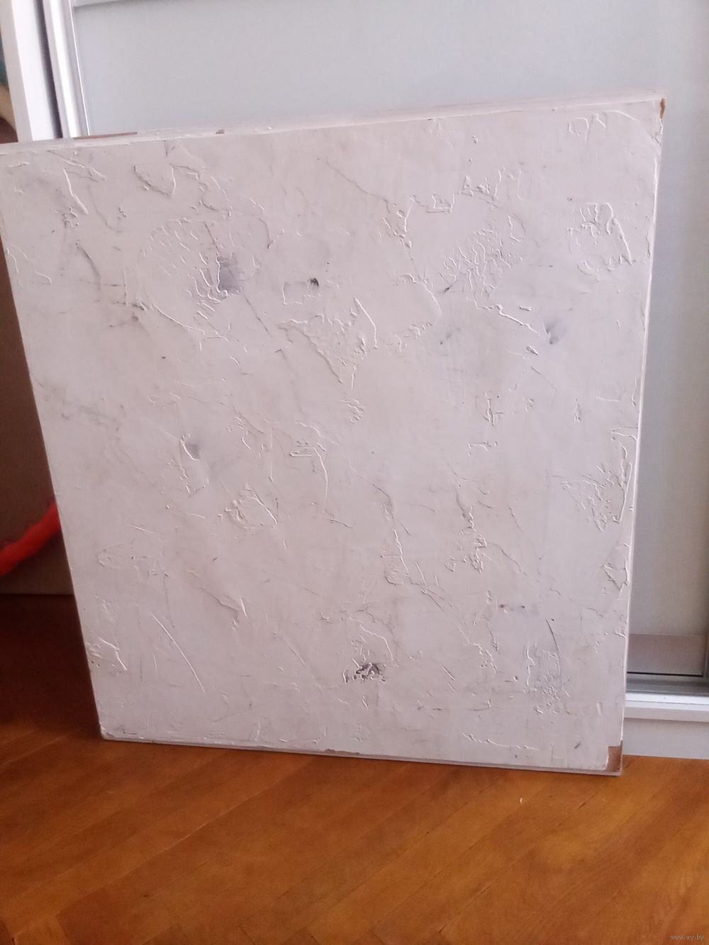 Двусторонний фото фон (дерево, белая стена) из натурального дерева (вторая сторона грунтованная) примерно 60 на 60.