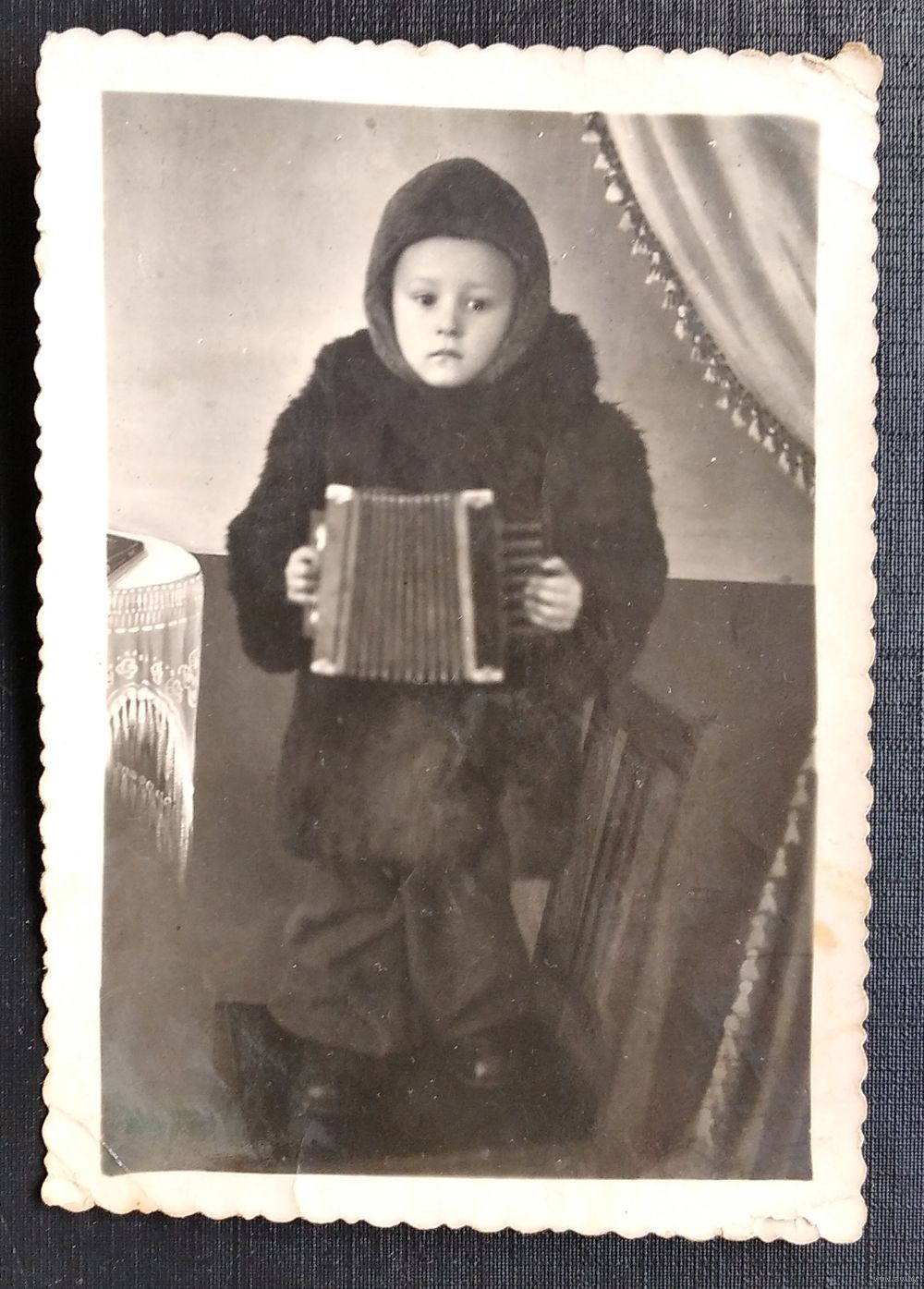 Фото мальчика с гармошкой. 1947 г. 8х11 см.