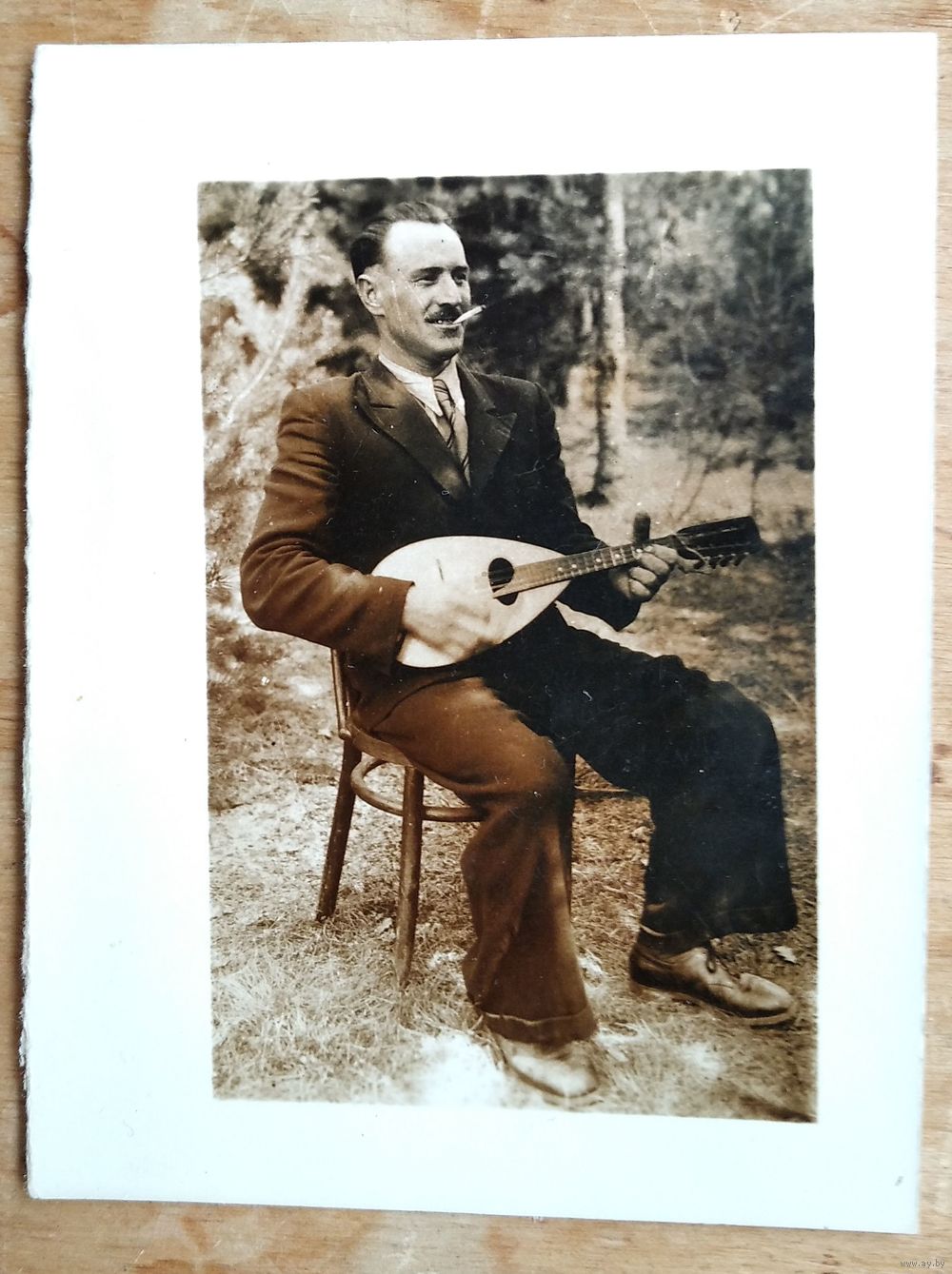 Фото мужчины с мандолиной(?). 7.5х10 см.