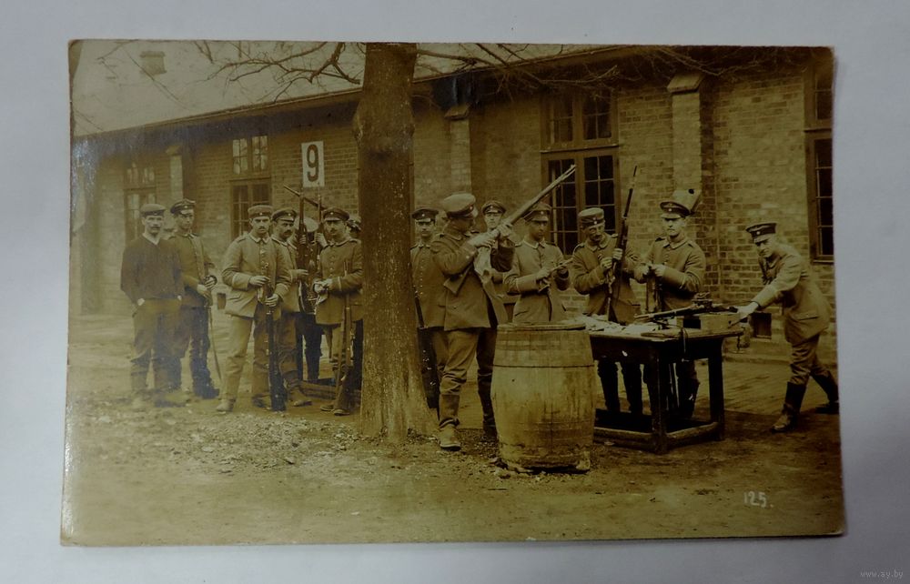Фото немецких солдат "Чистка оружия" 1916 г. 1-я мировая война. Размер 8.8-13.8 см.