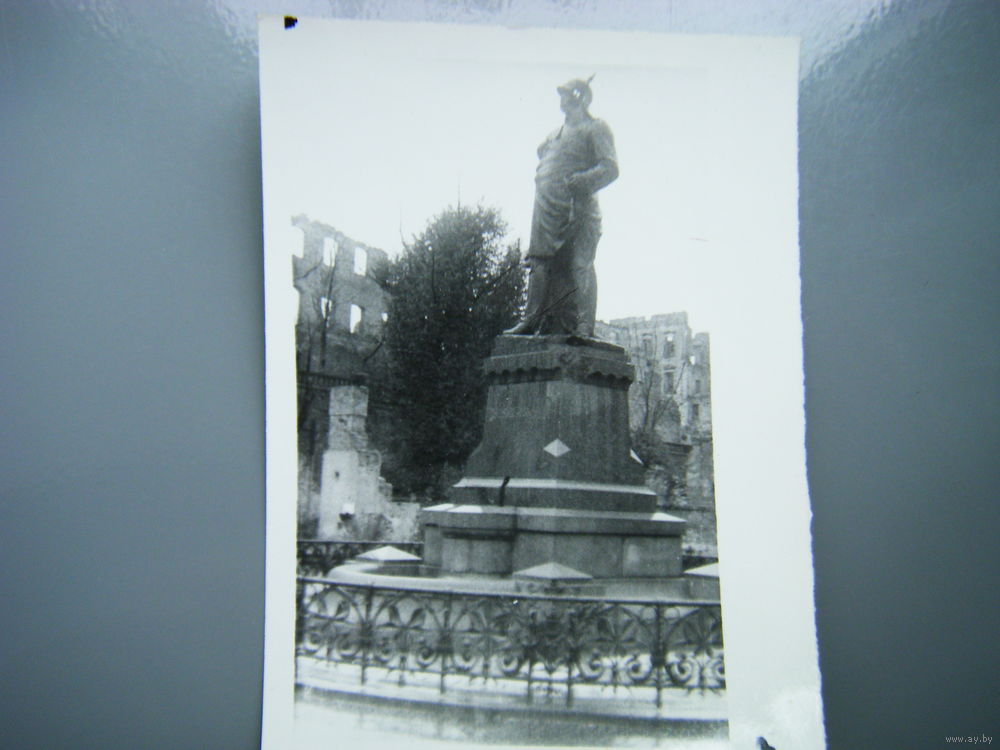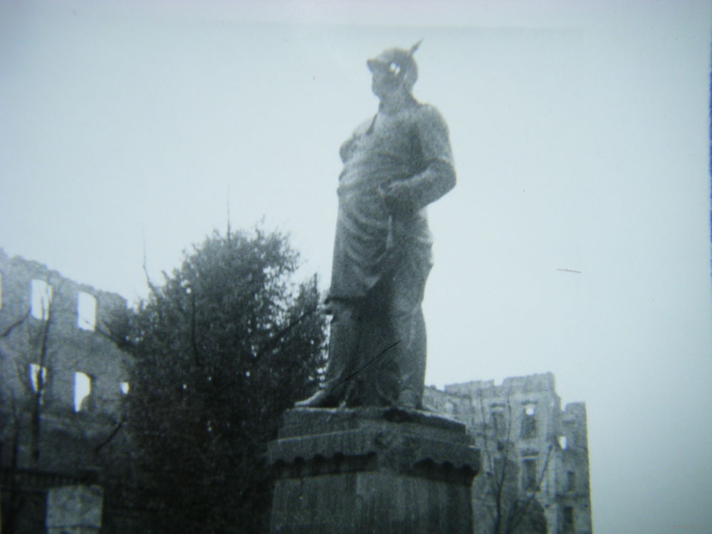 Фото немецкого памятника на фоне руин города.