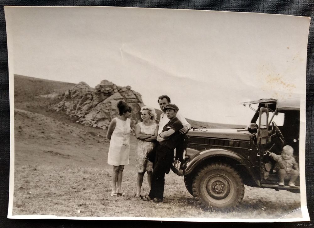 Фото с автомобилем ГАЗ-69. Монголия. 1970 г. 8х11 см.