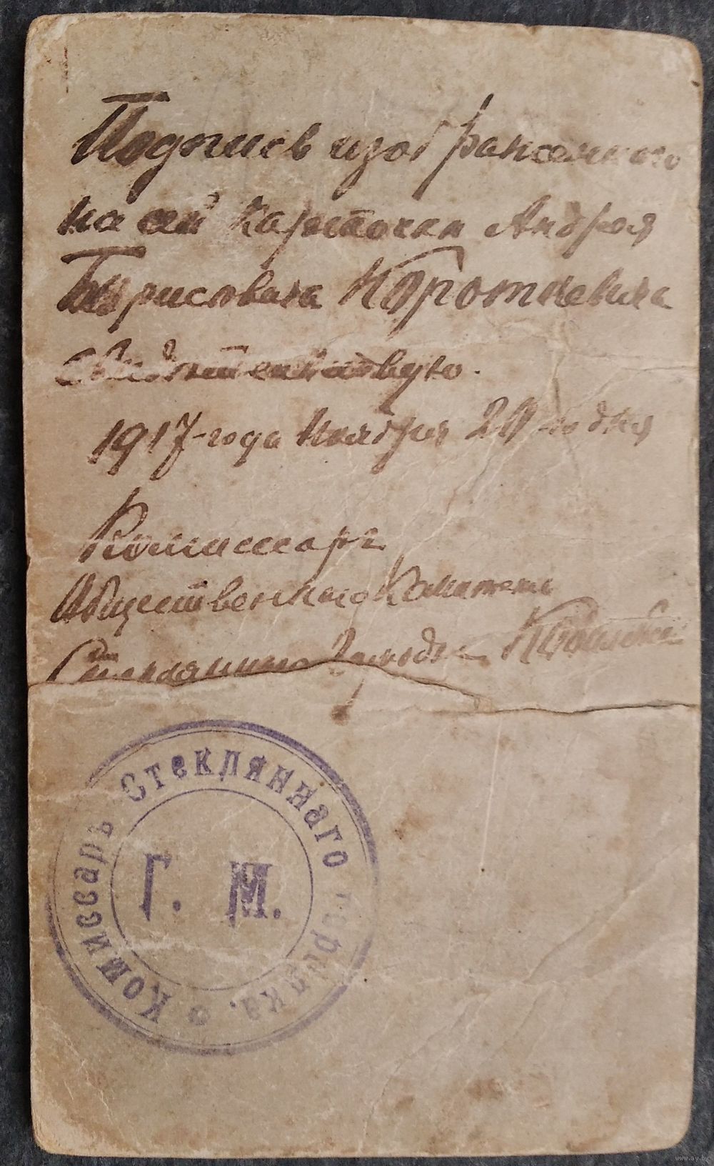 Комиссар Общественного Комитета Стеклянного городка — Кравченко (?).»