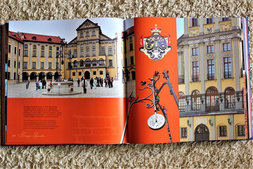 В издании впервые предпринята попытка систематизировать сведения о замках Беларуси согласно нынешнему состоянию сохранности объектов. В основе книги – список памятников, включенных в государственную программу «Замки Беларуси», принятую на 2012–2018 гг. Авторы проекта представили замковое наследие в виде «золотого», «серебряного» и «криничного» поясов – своеобразных маршрутов для изучения культурного наследия нашей страны. «Золотой пояс» демонстрирует памятники, дошедшие до нас в наиболее репрезентативном виде в качестве зримого свидетельства былой мощи страны. «Серебряный пояс» – это разрушенные замки, руины которых дают ясную картину их былого существования. «Криничный пояс» объединяет замки, открытые в ходе археологических и исторических исследований. Они остались в особом измененном рельефе земли. Над изданием трудился большой творческих коллектив – это 18 авторов-историков, которые составляли хроники замков и более 20 фотографов. В издание вошли уникальные авторские фотографии, картографический, архивный и музейный материалы из отечественных и зарубежных источников, исторические рисунки и гравюры. В фотоальбоме впервые публикуются 32 редких архивных снимка белорусских замков XIX и начала XX века из рукописного отдела библиотеки Вильнюсского университета. Прежде всего он подтверждает представление о Беларуси как «стране замков», известное еще с XV века. На сегодняшний день невозможно назвать точную цифру белорусских замков и укреплений, возведенных в XIV-XVIII вв. Только по итогам археологических и натурально-исторических изысканий последних 50 лет и в результате обобщения сведений в процессе подготовки издания, зафиксировано около 300 таких памятников. Если соотнести это количество с размерами Беларуси, равными примерно 207,6 тыс. кв. км, то получается, что замки располагались практически каждые 50-70 км. В ходе работы над материалами книги впервые был произведен подсчет, который красноречиво свидетельствует об эпической и героической истории нашей страны. С XIV по XVIII вв. Беларусь пережила более 100 войн и 3 демографических кризиса. В XV веке войны отняли 23 года мирной жизни, XVI веке – 42 года, XVII век практически весь прошел в войнах – 71 год войны и только 29 лет мира, в XVIII веке – 64 года войны и 36 лет мира. Книга-фотоальбом «Беларусь замковая» стала обладателем высшей награды 54-го Национального конкурса «Искусство книги» – Гран-при в номинации «Триумф». Альбом является первым масштабным проектом белорусского книгоиздания XXI века, посвященным памятникам монументального зодчества, объединивший ведущих историков и фотографов страны для создания актуальной хроники замковой культуры Беларуси.