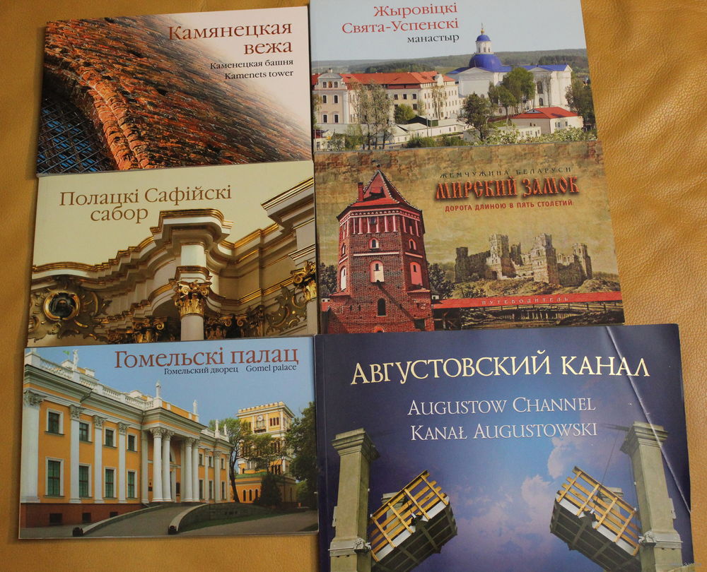 Фотоальбомы Августовский канал, Полоцкий Софийский собор, Мирский замок, Гомельский дворец Румянцевых-Паскевичей, Камянецкая вежа книга на трех языках, на рускай, англійскай і польскай мовах. |