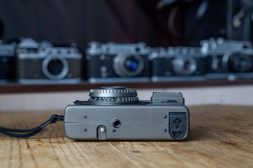 Довольно редкий вариант фотоаппарата Эликон 4 в корпусе серого (серебристого) цвета. Судя по встречающимся номерам, камер в сером корпусе было выпущено не более 4-5 тыс.