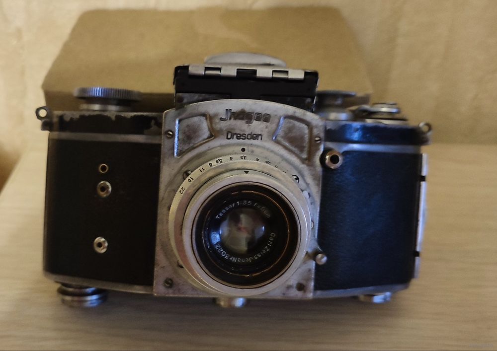 Состояние на фото.затвор и диафрагма рабочие.РедкийРазмеры длина 15.5см высота 9см.ширина с объект.-7см без-4смВес 720гр. фотоаппарат Exacta Ihagee Dresden с объективом Trioplan 2.9/50mm.
