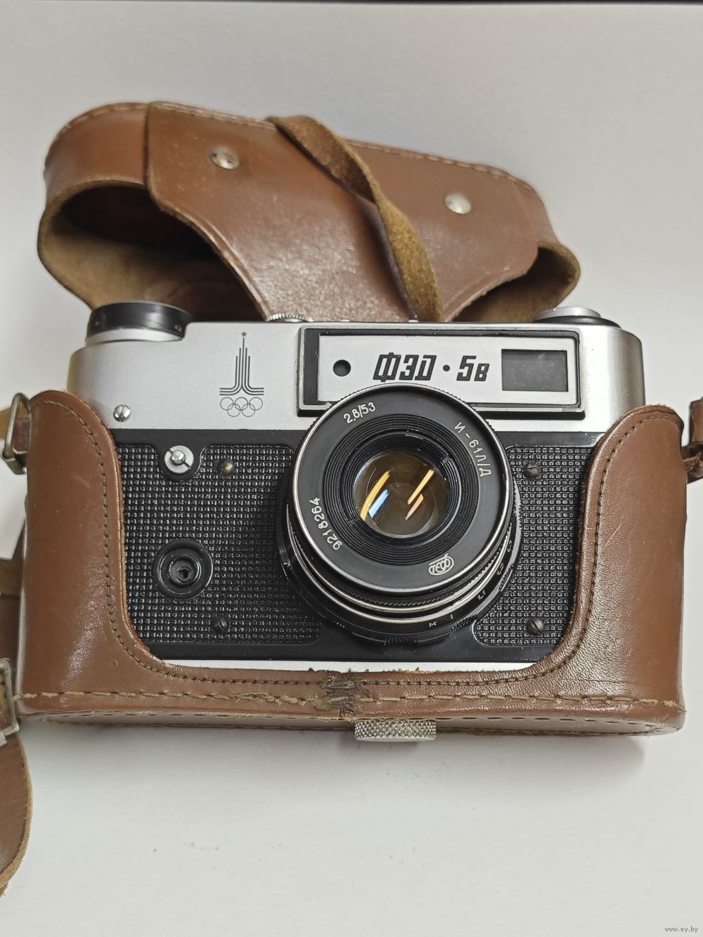 Фотоаппарат "ФЭД-5В" с объективом "Индустар-61 Л/Д" (с олимпийской символикой).Харьковский машиностроительный завод им. Дзержинского (ФЭД), СССР, 1975-1980 гг. Состояние на фото.