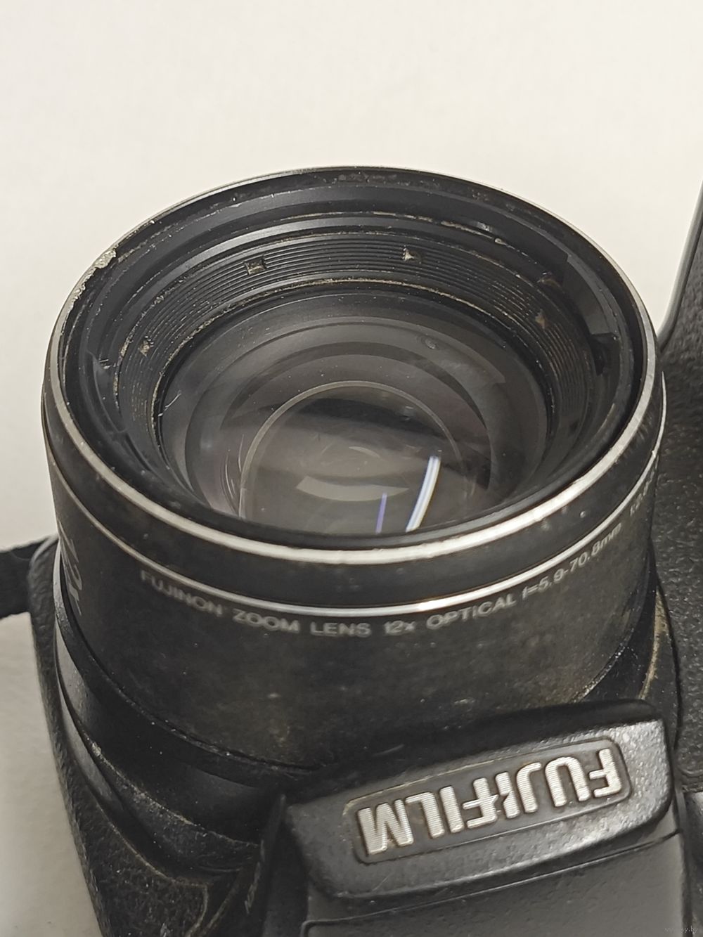 Цифровой фотоаппарат "Fujifilm". Эксплуатировался в походных условиях. Сам рабочий(кроме экрана),но видок так себе,потрепан. Экран не врубается, настройки и фотографирование через окошко,в нем всё меню рабочее. Крышка отсека батареи не закрывается плотно,отломан усик. Перед тем как сделать ставку изучите фото.