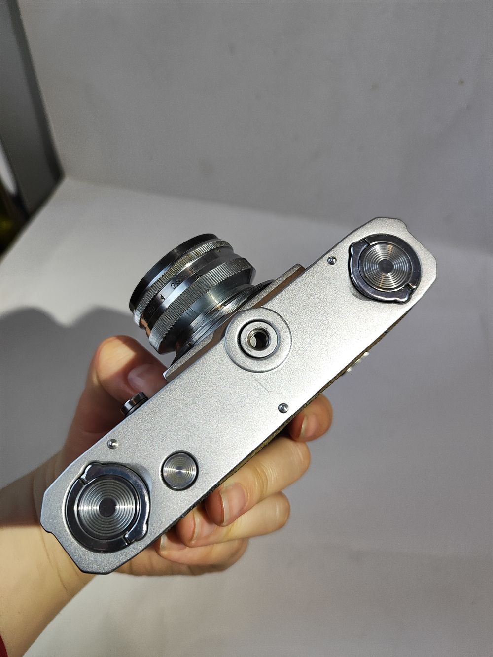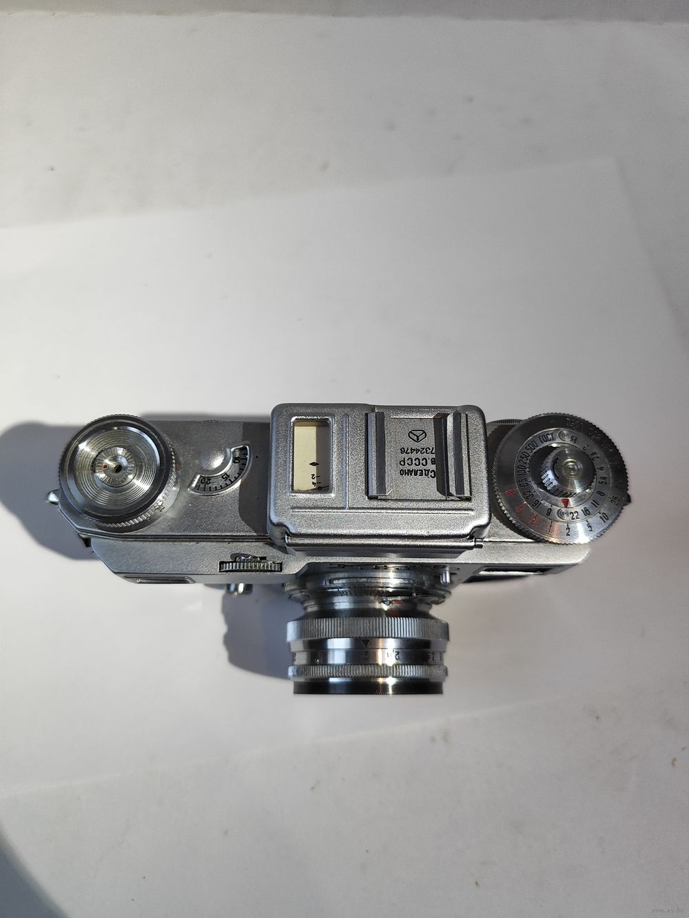 Не рабочий (заклинило шторки или затвор или то и другое).Экспонометр ,автоспуск и дальномер рабочие. Состояние на фото.(загрязнён объектив,кое где отклеилась обтяжка).
