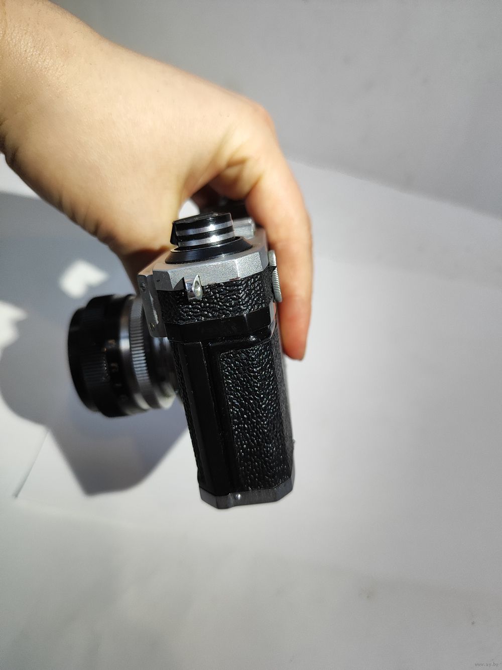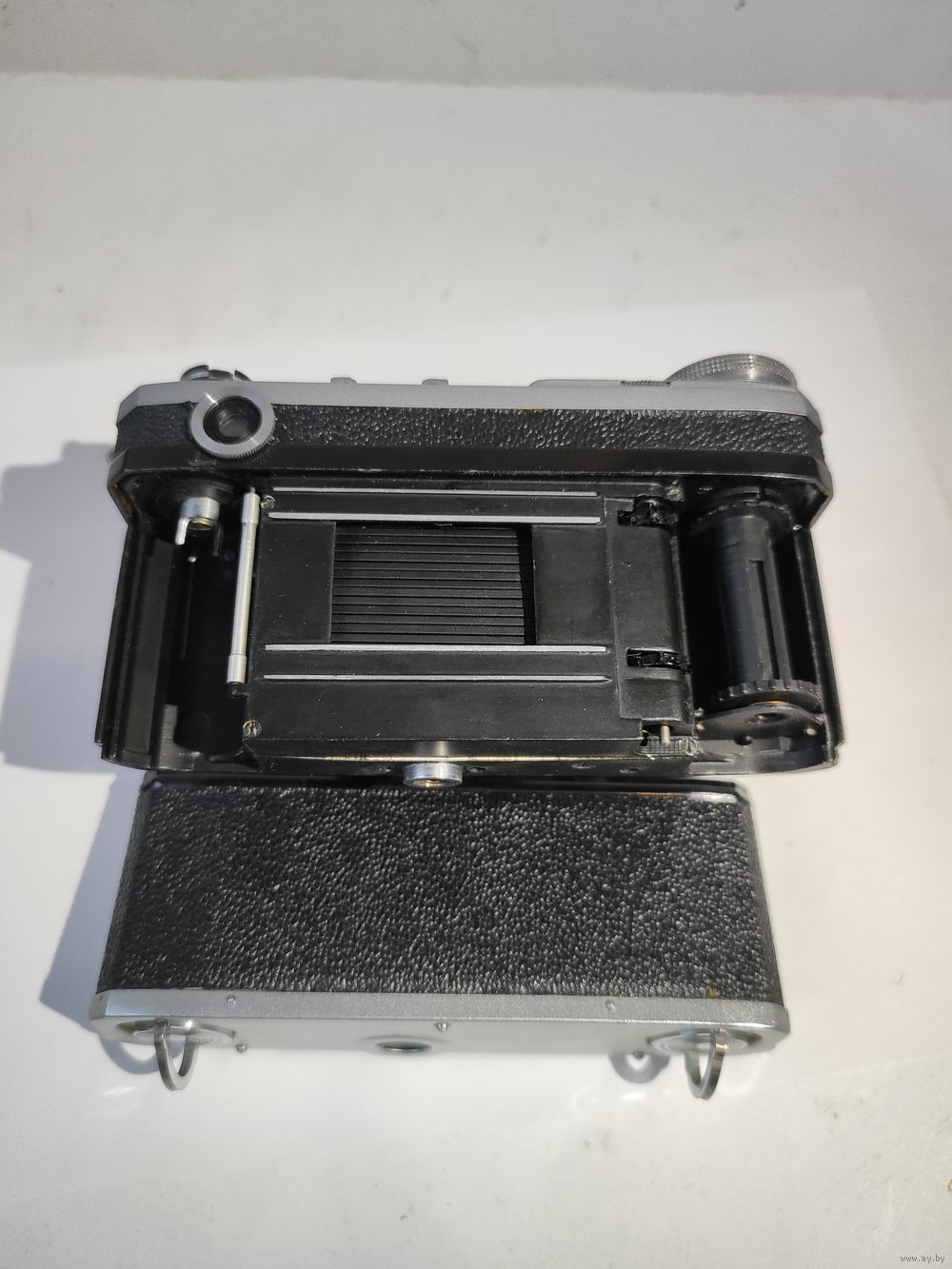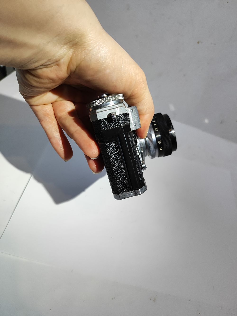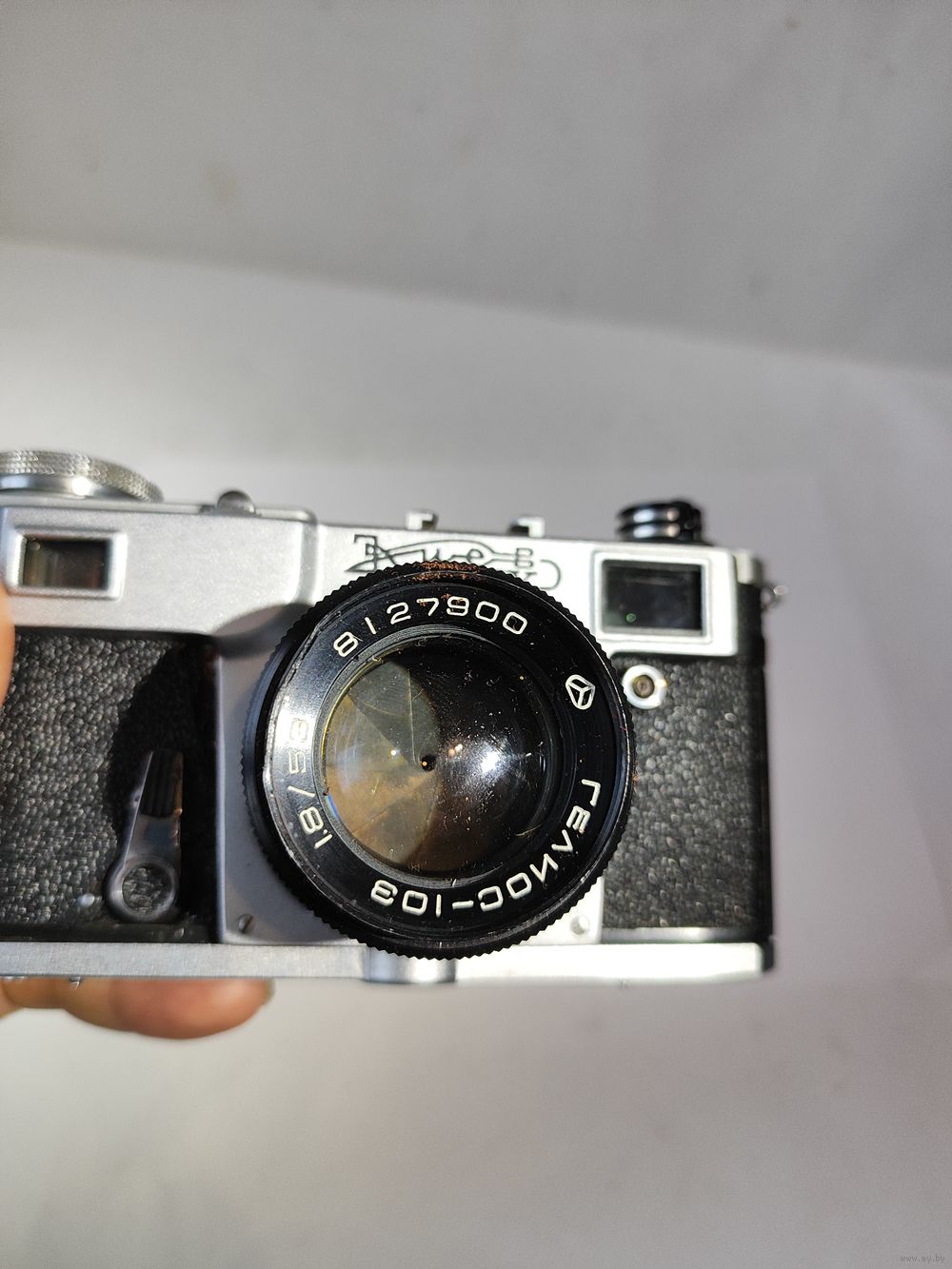 Затвор и шторки рабочие. Не работает дальномер. Автоспуск рабочий. Состояние на фото.(объектив не совсем плотно держится в прижимной оправе-обломан крепёжный штырёк, установке диафрагмы не мешает).Небольшая замятость резьбы для фильтров.