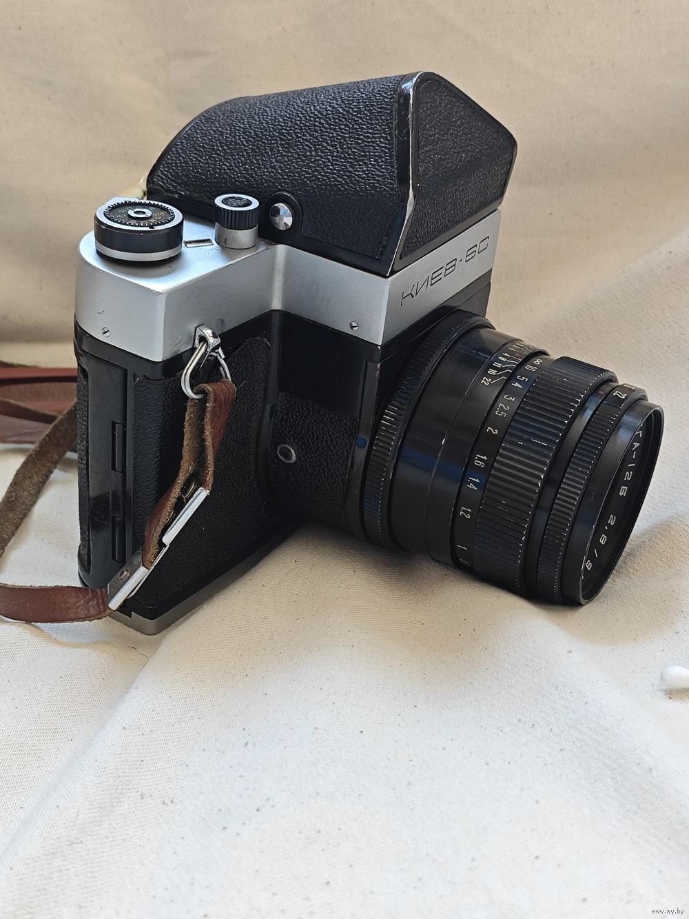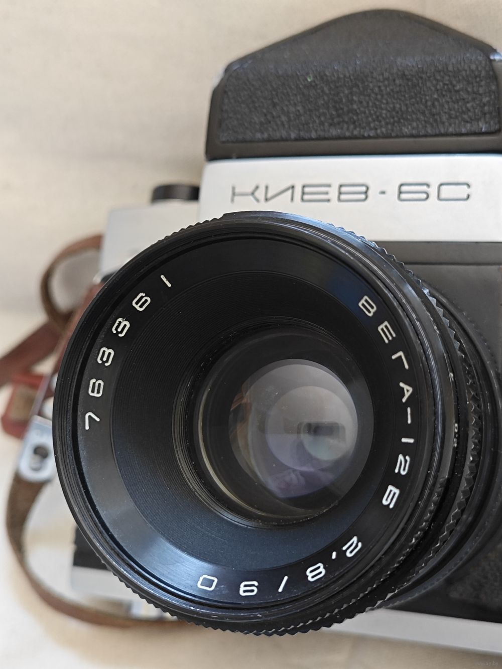 Массивная оветская среднеформатная камера "Киев-6 С". На фотоаппарате установлен штатный объектив «Вега-12Б» 2.8/90. Кнопка спуска расположена слева, что является характерной чертой этой модели. Состояние на фото. По работе : взводиться и щелкает,дальнейший функционал не проверялся. Крышки объектива и кофра нет в комплекте. Перед тем как сделать ставку изучите фото. Если есть вопросы,задавайте до завершения аукциона!!!