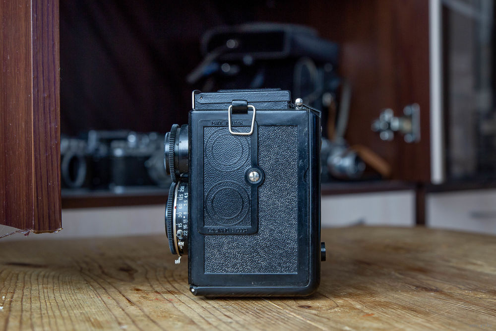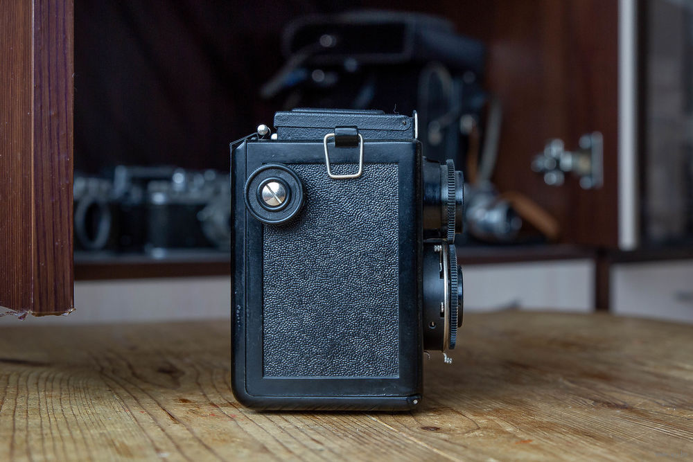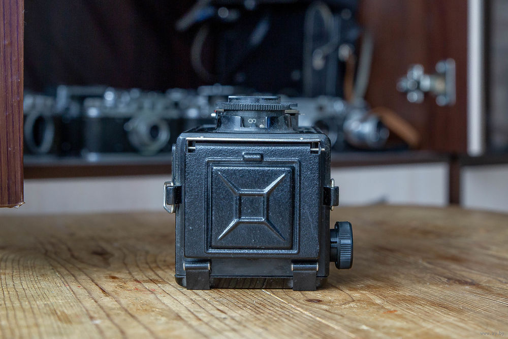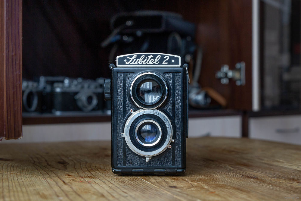 Фотоаппарат Любитель 2, с надписью на латинице. Из недостатков, есть небольшой скол на корпусе (на последнем фото более подробно).