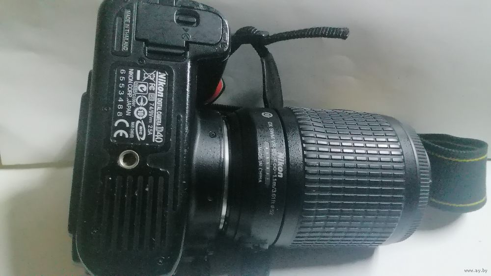 Фотоаппарат Nikon D40 . В хорошем внешнем и техническом состоянии . В комплекте : объектив , зарядное устройство , сетевой шнур , фотосумка , бленда , аккумулятор . Пробег приближается к 57.000 .