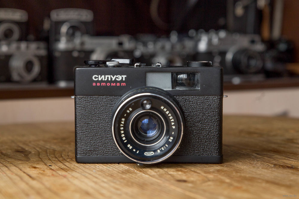 Фотоаппарат Силуэт Автомат, в редком, полностью окрашенном в черное корпусе. В отличии от варианта с "серебристым" цветом корпуса, черных было выпущено сильно меньше.