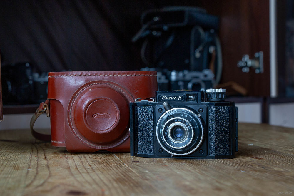 Нечастая модель фотоаппарата Смена. В комплекте кофр и крышка на объектив.