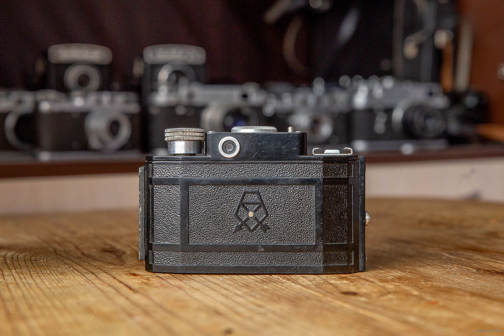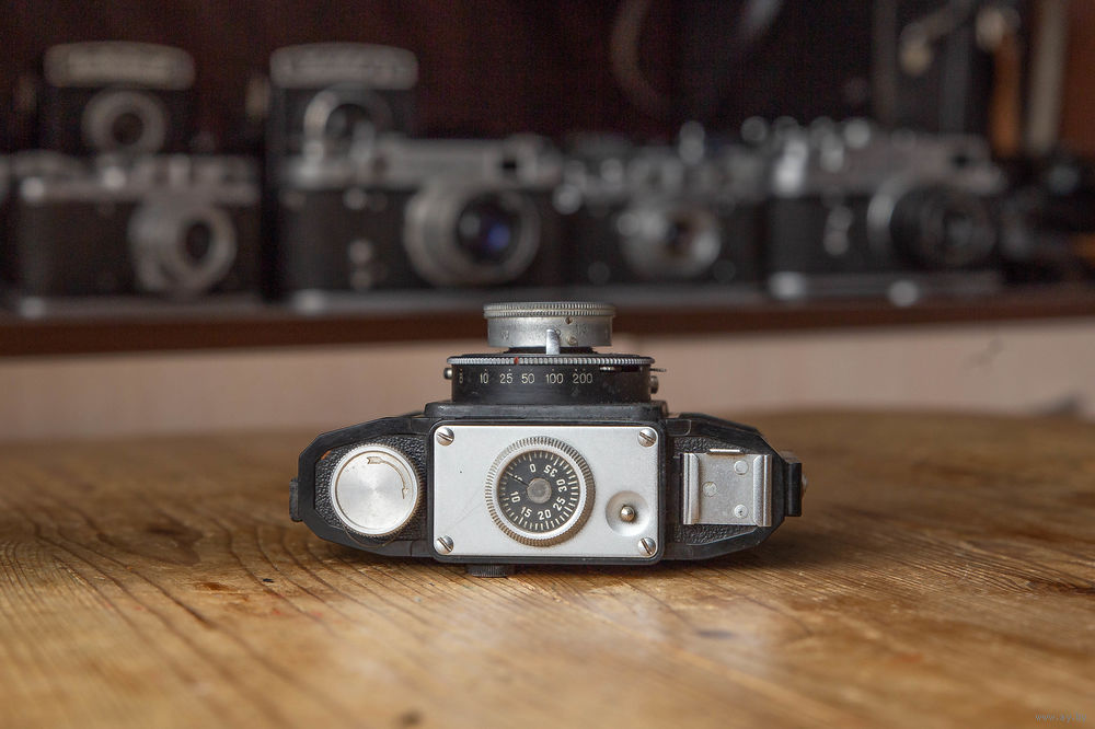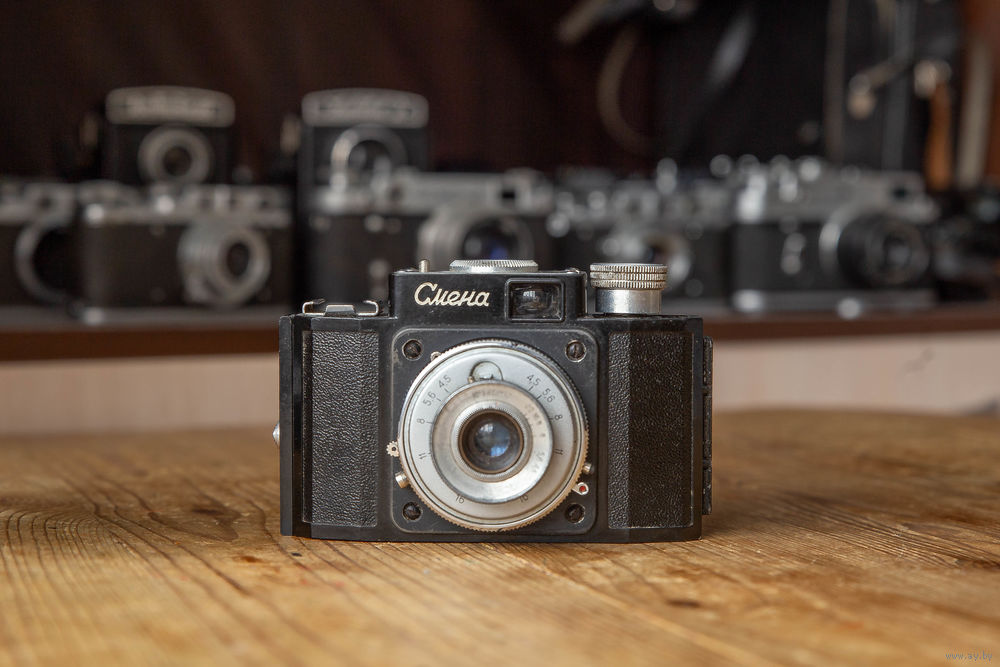 Фотоаппарат Смена, первая модель. N146202, производство ГОМЗ. У фотоаппарата отсутствует прижимной столик.
