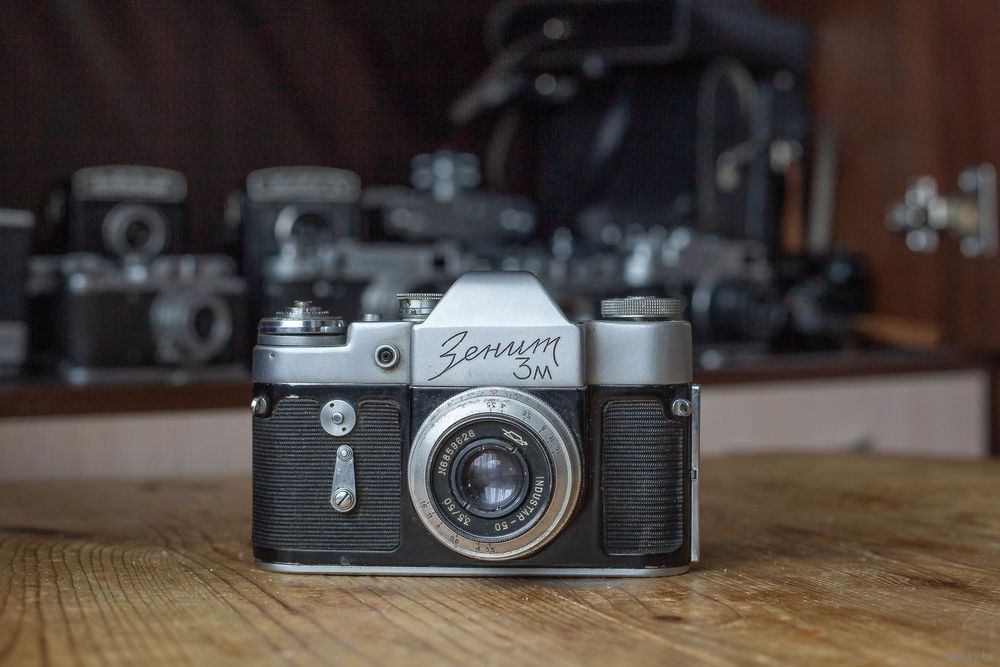Фотоаппарат Зенит 3М, 65 года. Написание названия на кириллице, выполнено гравировкой.