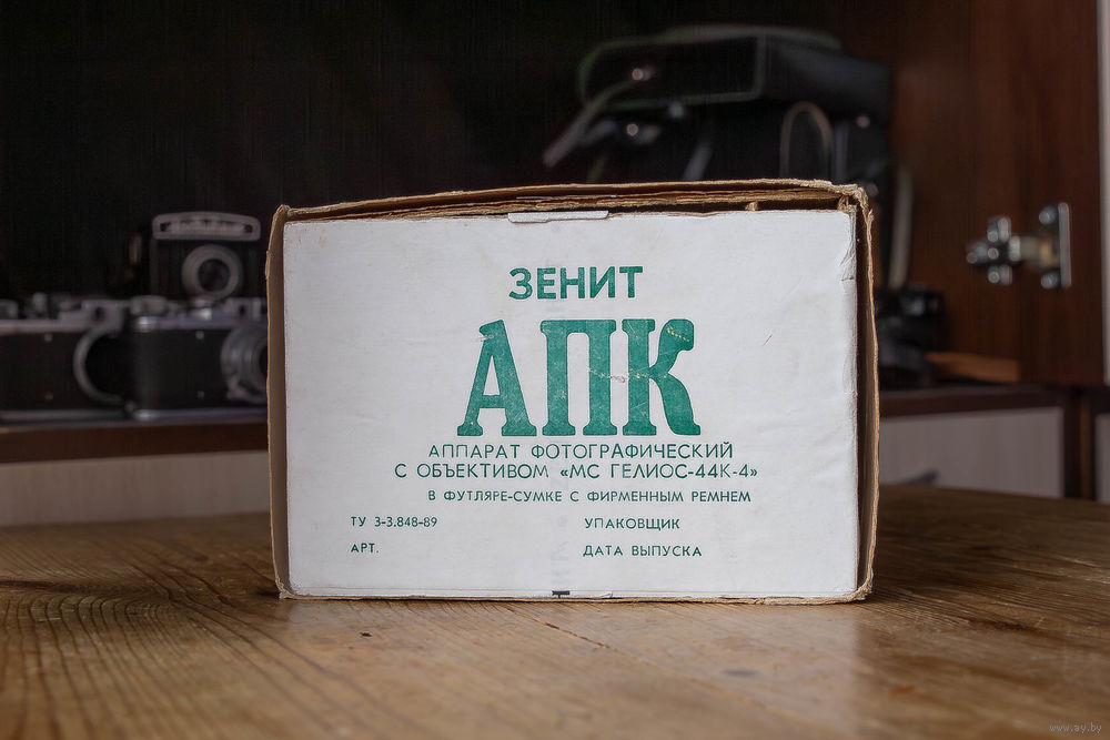 Фотоаппарат Зенит-АПК с оригинальной коробкой и паспортом. Рукав коробки местами надорван (сделал дополнительные фото, на них видно) он выполнен из очень тонкого картона. Видимо по этому коробок от данной камеры практически не сохранилось к нашему времени. У паспорта отсутствует задняя часть обложки. Номер в паспорте и на тушке совпадает.