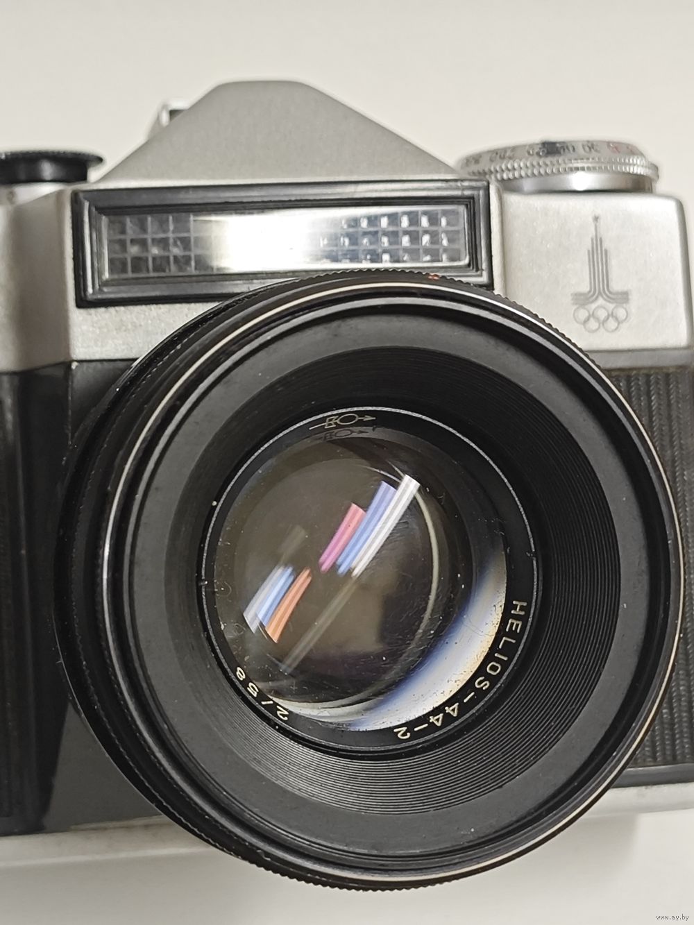 Фотоаппарат "Зенит-Е" с олимпийской символикой.Красногорский механический завод (КМЗ), СССР, 1979-1980 гг. Состояние на фото.