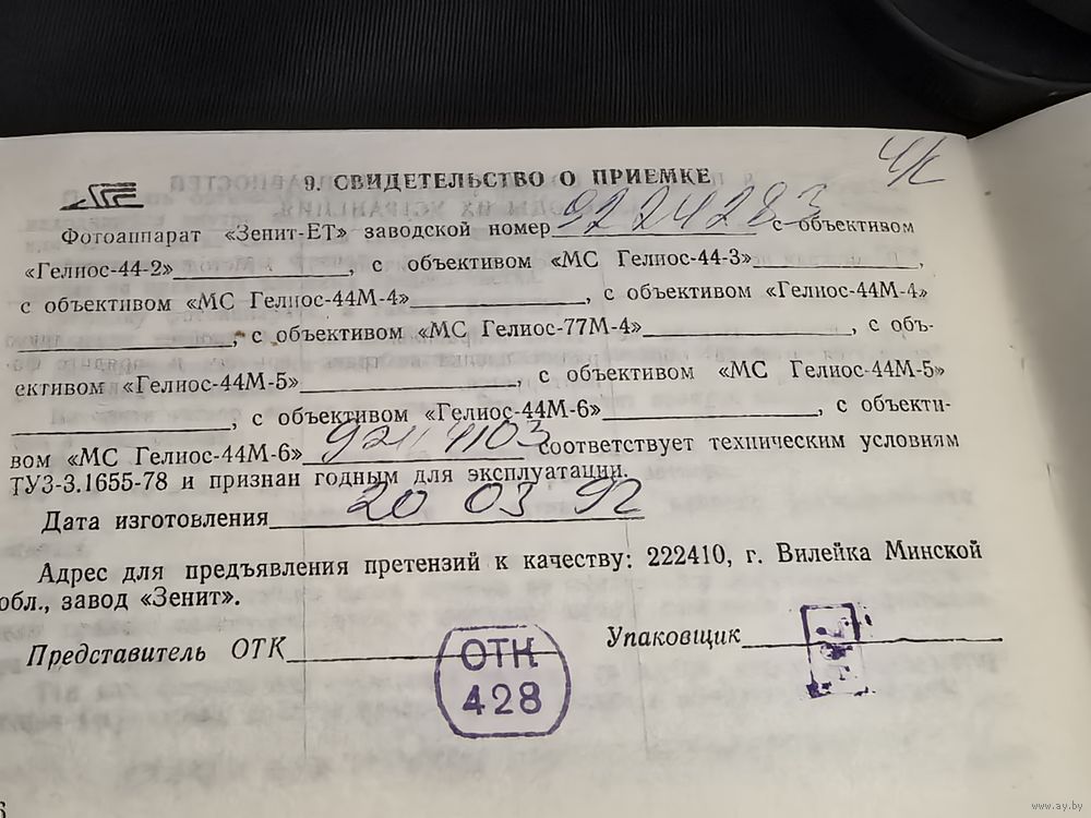 Фотоаппарат ЗЕНИТ ЕТ.... HELIOS-44M-6