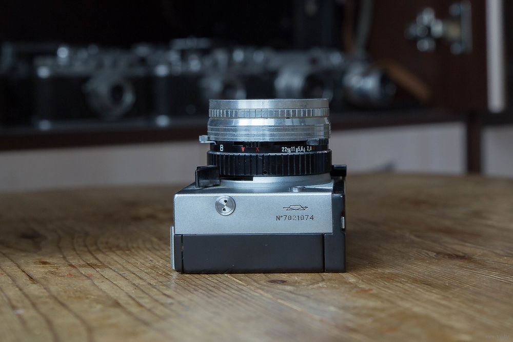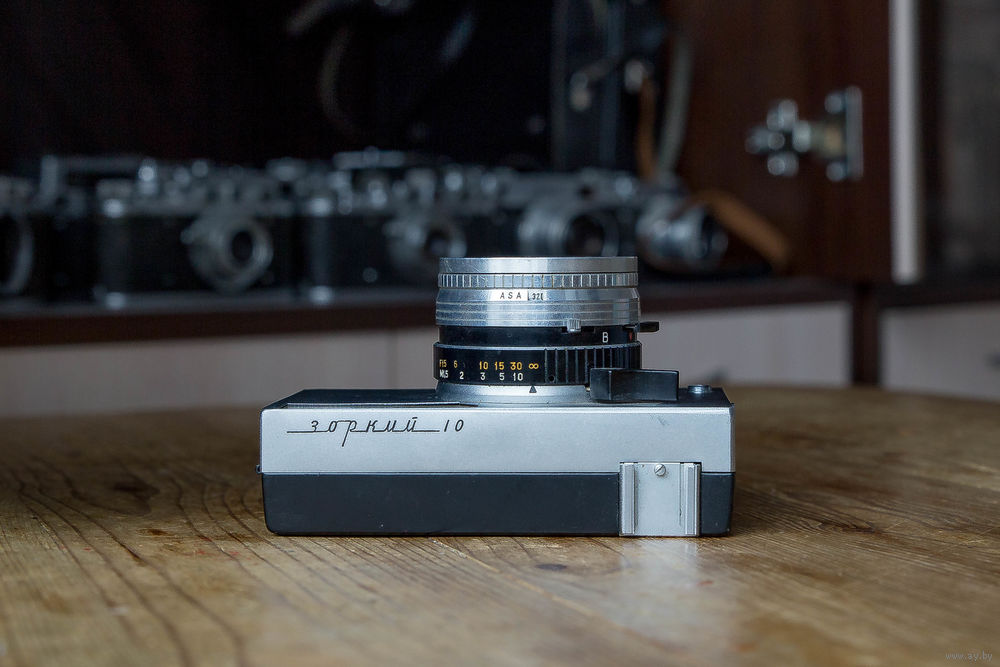 Фотоаппарат Зоркий 10, вариант, 1970 года. Написание названия на кириллице, выполнено гравировкой.