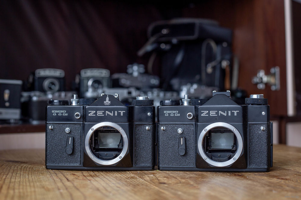 Фотоаппараты Зенит TTL, 2 разных варианта. 1980 года (с Олимпийской символикой) и 1982 года.