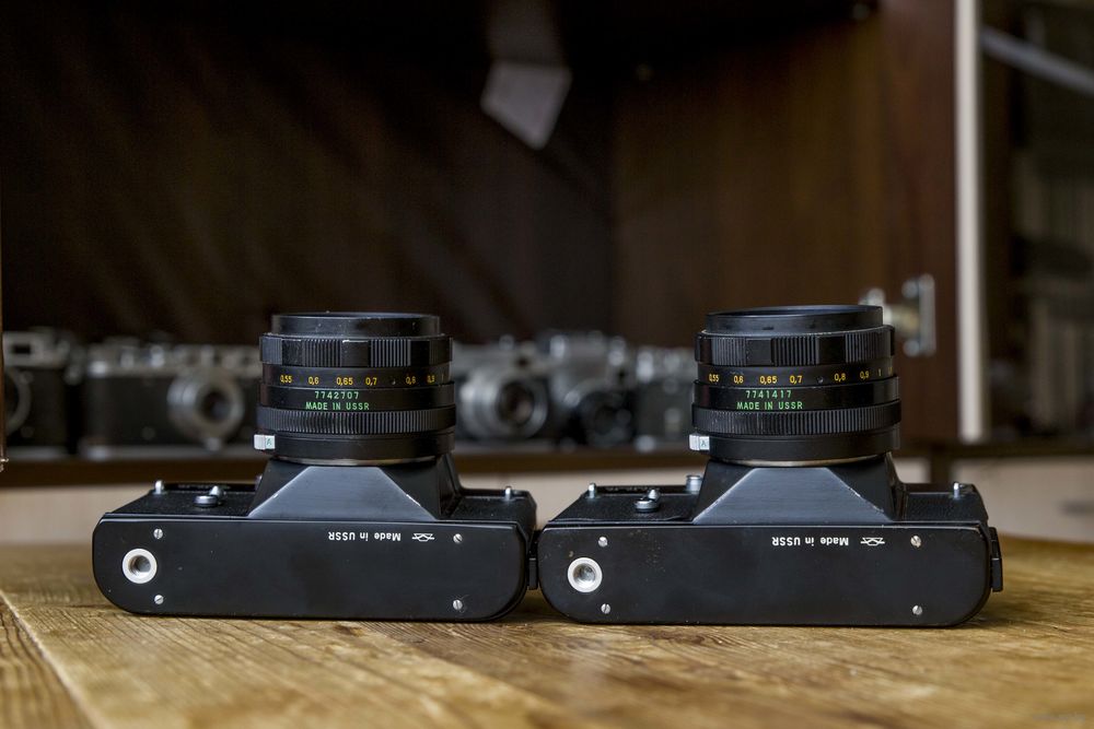 Ранние варианты фотоаппаратов Зенит TTL 77-го года, с окрашенными в черный цвет верхней и нижней крышками. В отличии от ранних "серебристых" вариантов, полностью черные встречаются крайне редко.