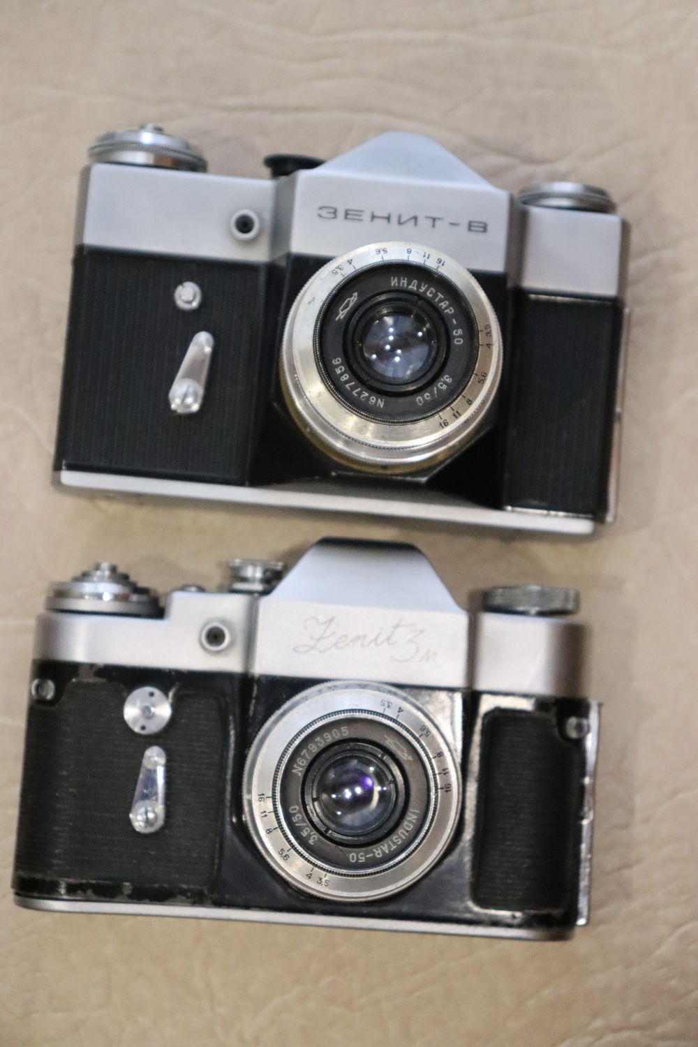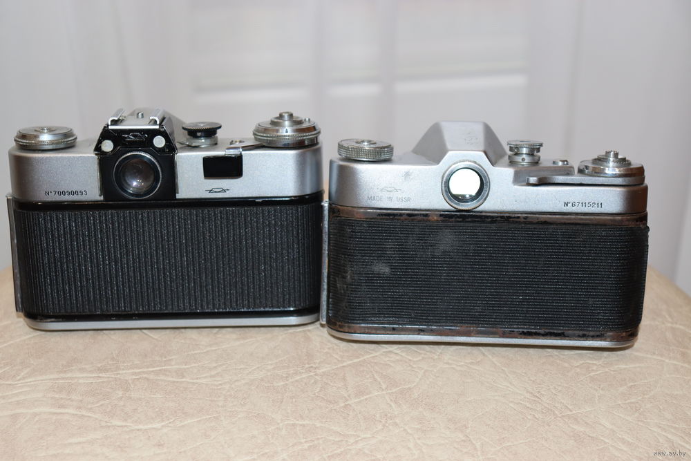 Шторки целые, всё взводится, но камеры и объективы требуют обслуживания.