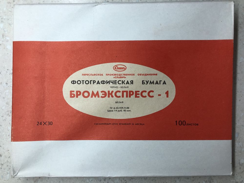 Фотобумага Бромэкспресс-1 24х30 1990 г., тонкая, глянцевая, полумягкая, 100 листов