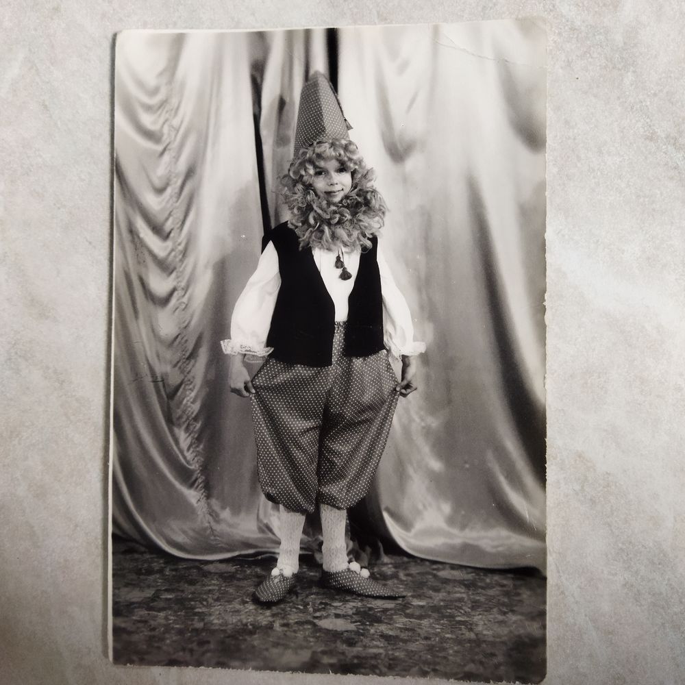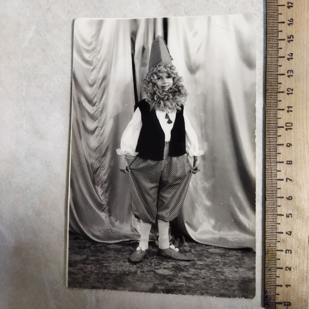 Фотография. История СССР. Костюмированное фото. Карабас Барабас или гном. Школьница СССР.