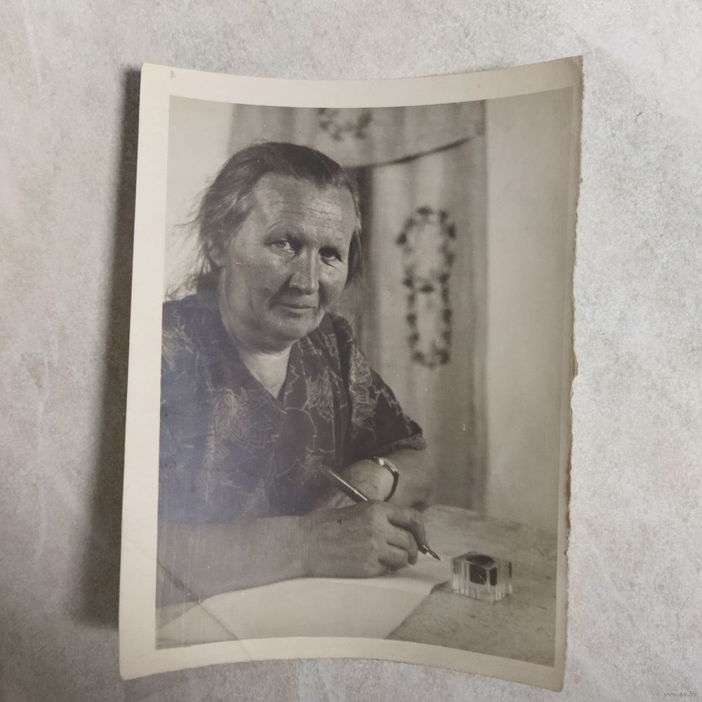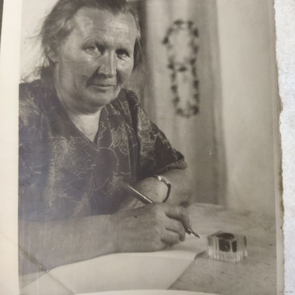 Фотография. История СССР в лицах. Бабушка пишет письмо. Быт СССР. Ручка, чернильница. 1955 г.