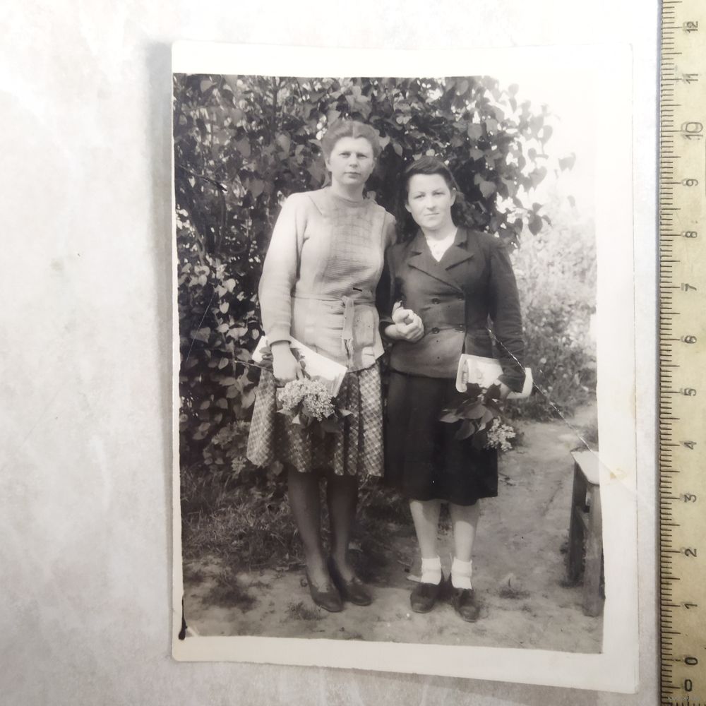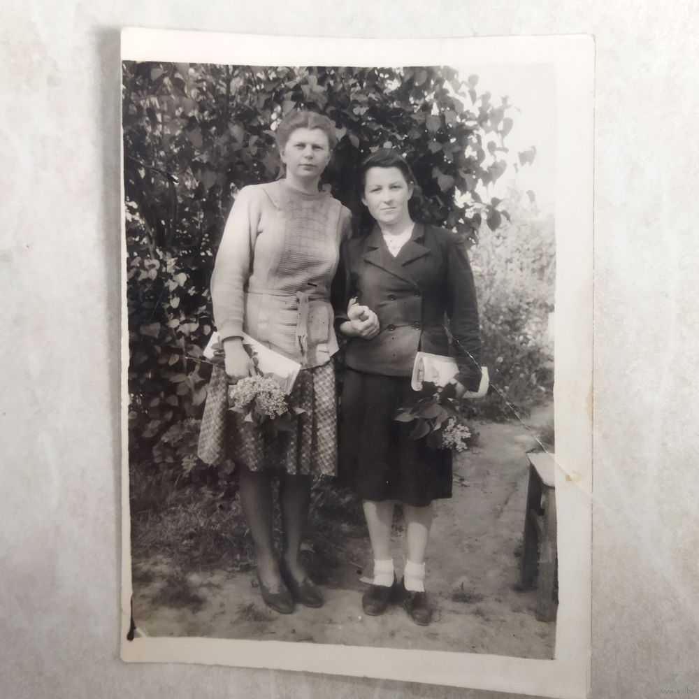 Фотография. История СССР в лицах. Две подруги у сирени. 1950-е. Винтаж. Мода.